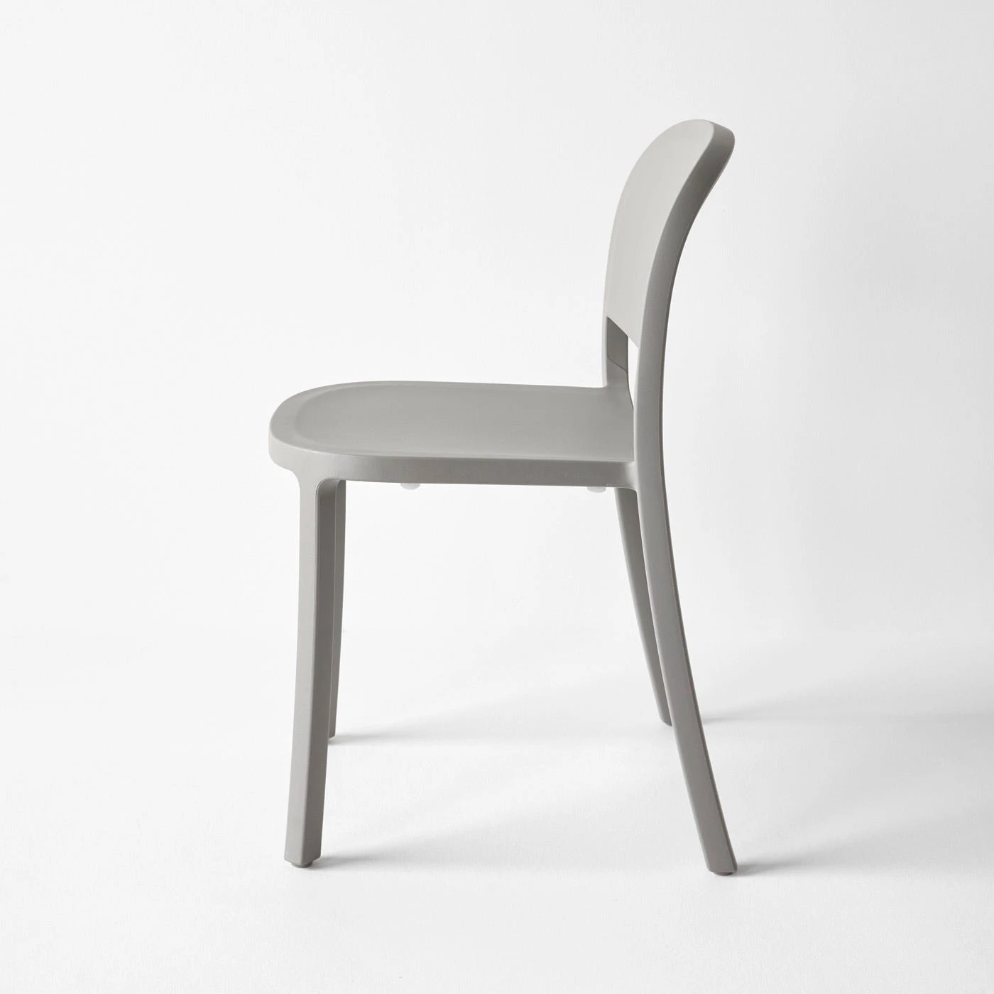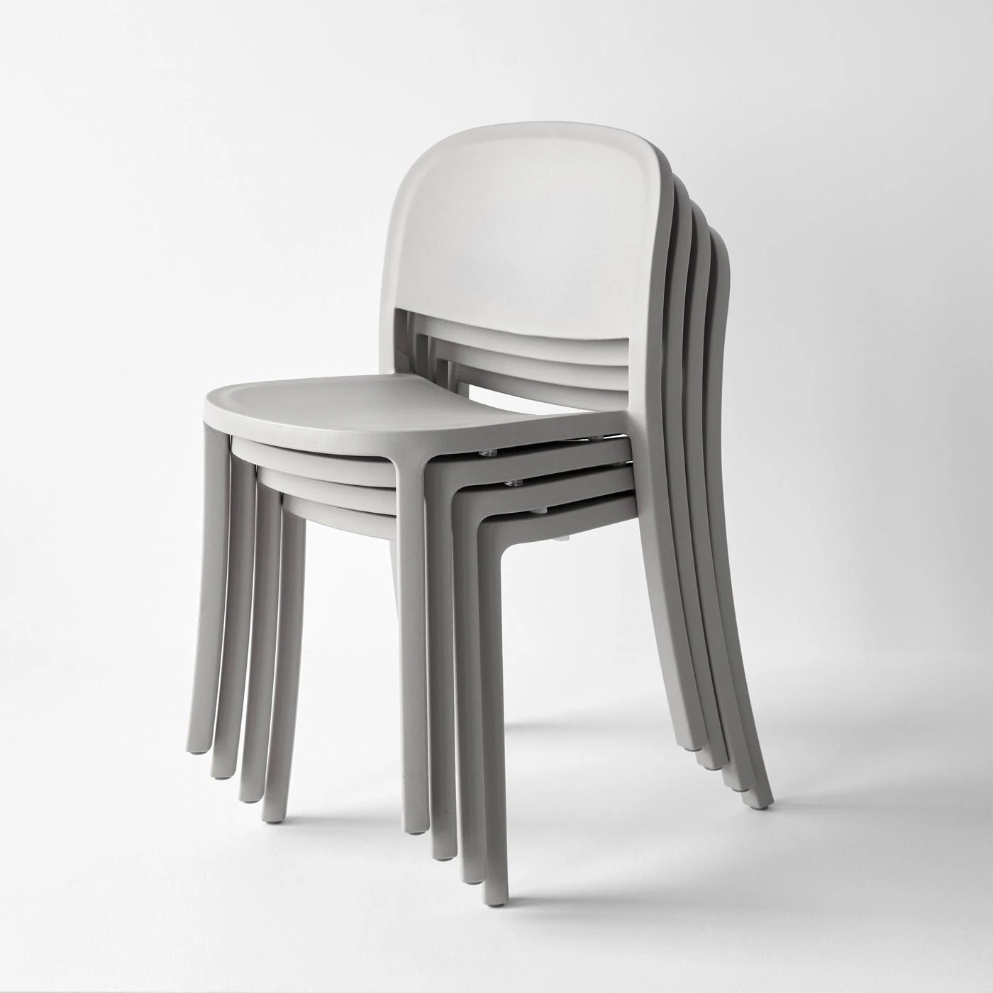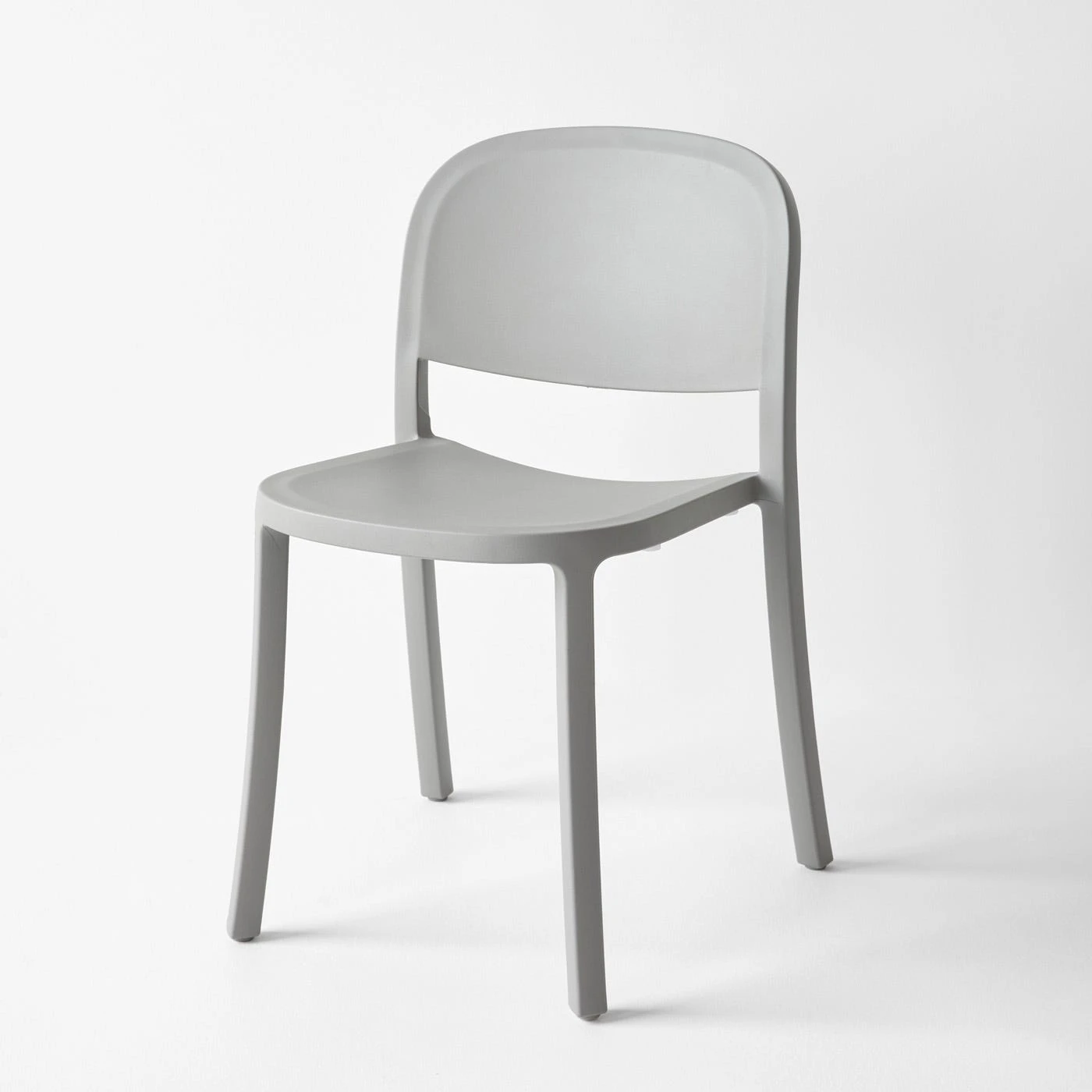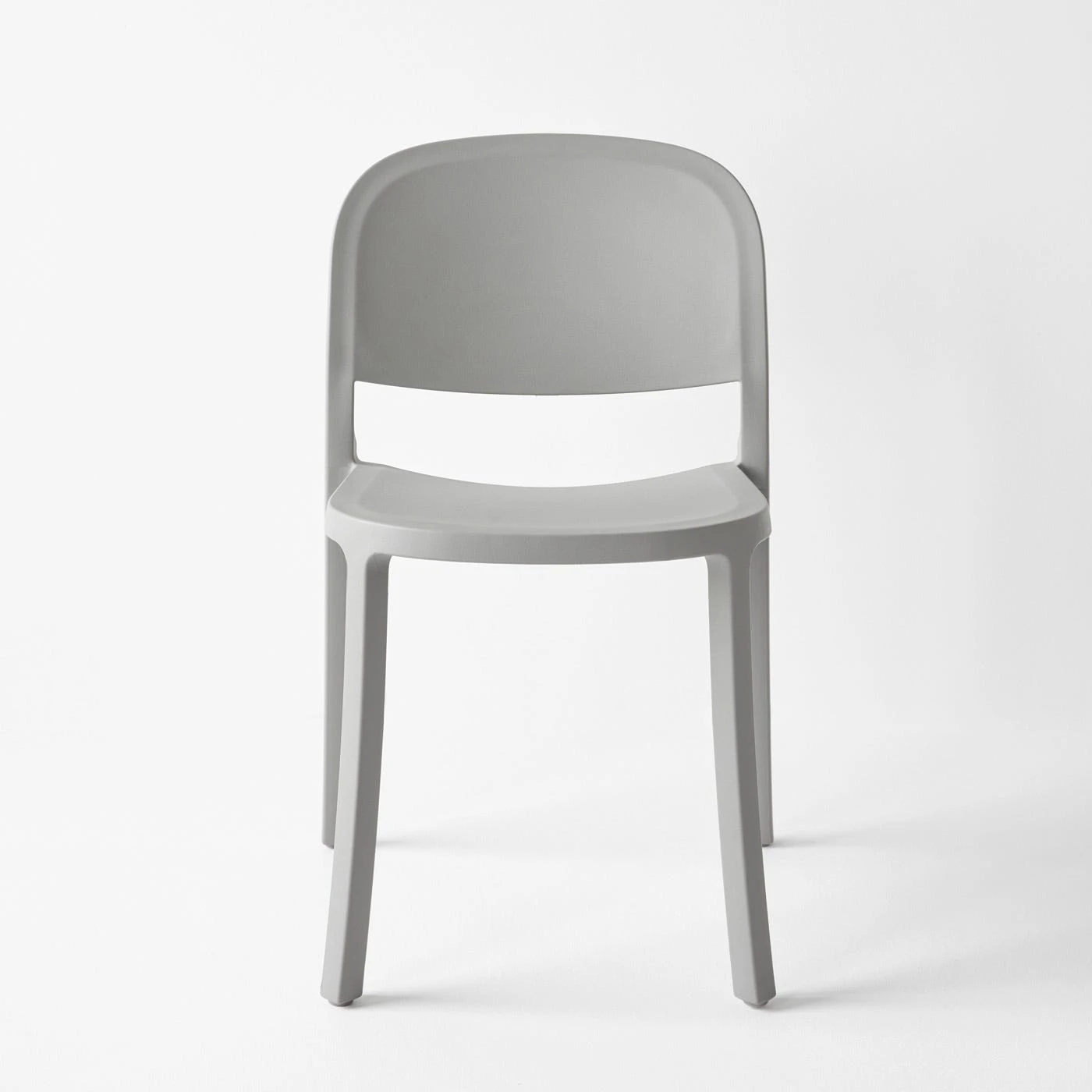 This minimalist chair is testament to long-lasting design. Made in the USA by Emeco, known for its iconic 1006 Navy Chair, they have made simplicity and durability their standard since 1944. The 1 Inch Reclaimed Stacking Chair, designed by Jasper Morrison, embodies those very same principles of design but with a new approach to how it’s built. Constructed using recycled off-cuts from manufacturing that would otherwise go to waste, the 1 Inch Chair finds a new way to be sustainable. Its indoor/outdoor friendly material makes this chair versatile and durable while the simple, stackable shape makes it a new classic. This light gray stackable chair is comfortable yet sturdy enough to last a lifetime.