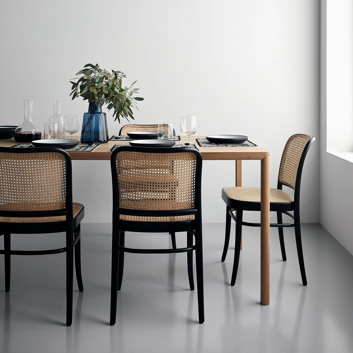 Based on Josef Hoffmann’s classic 1930 Wiener Werkstätte design, the 811 Chair is crafted in the Czech Republic from steam bent solid beech wood and natural rattan cane and finished with a black stain and lacquer using techniques that have been in practice for over 150 years. An iconic piece of modernism, its timeless design in crisp black highlights the chair’s striking silhouette.