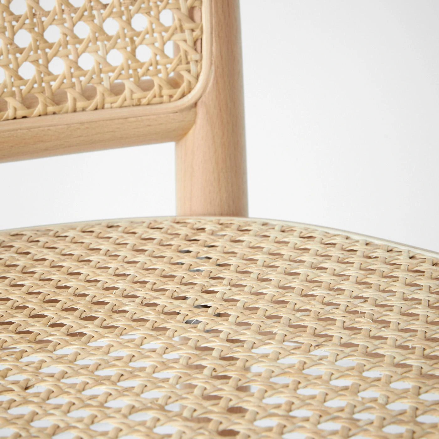 - Natural bent beech wood with clear lacquer finish, natural rattan cane, plastic foot glides.