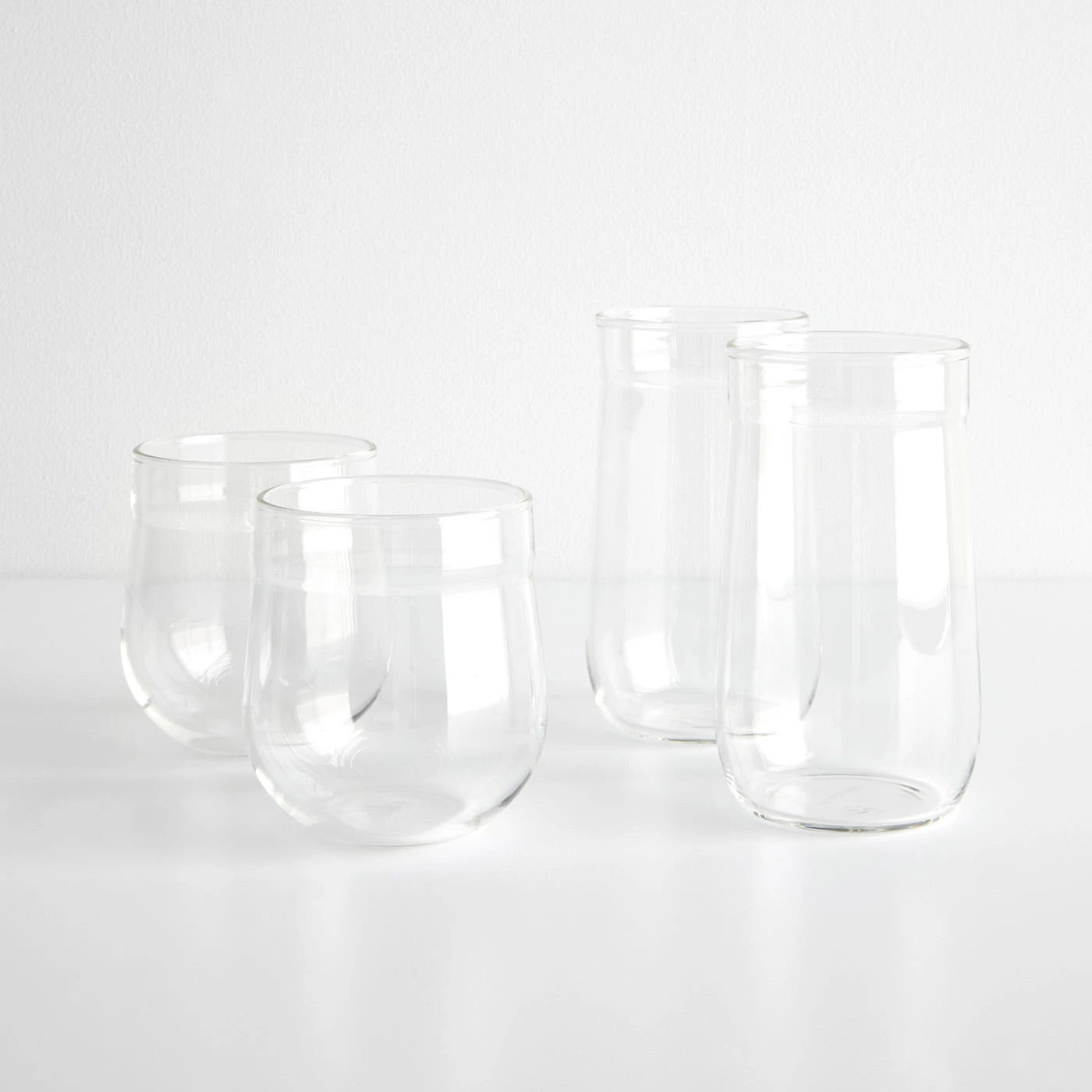 Drink up with this set of crystal clear highball glasses. Make one your go-to water glass and you’ll reach for it again and again. They’re also ideal for iced tea or coffee since they’re handmade from sturdy borosilicate glass which is designed to resist thermal shock. Unique but still minimal, this silhouette offers a modern take on a classic glass. The slightly curved shape and angled lip make holding and drinking from the Angle Bell Highball Glass a delightful experience.