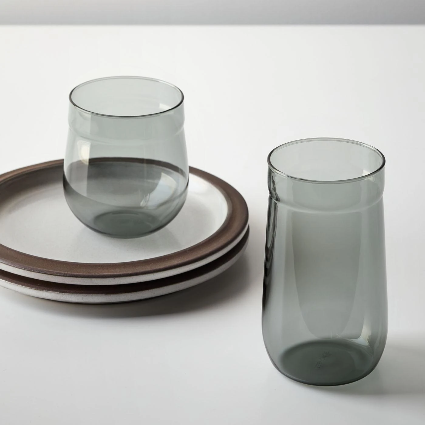 Happy hour just got a lot more sophisticated. Serve up your favorite single malt or seasonal cocktail in this beautifully crafted barware. Smoky glass lends a moody hue and forms a signature shape that fits perfectly in your palm. Handmade from borosilicate glass, known for its resistance to heat and thermal shock, the Angle Bell collection is designed with form and function in mind. The angle of the lip makes for easy sipping and the durable, dishwasher-safe glass ensures cleanup is a breeze.