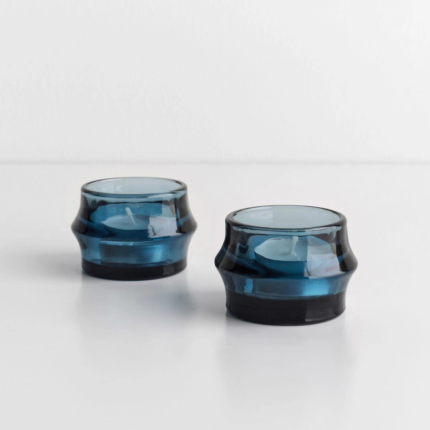 Designed by Sebastian Holmbäck, a Danish industrial designer, Arc Blue Tealight Holders add a serene touch to a tabletop, mantel or shelf. These vessels are created with Holmegaard’s unsurpassed glass craftsmanship, resulting in a smooth, elegant shape. The stout silhouette is balanced by a center axis, with curved arcs extending toward the top and bottom. Tealight candles easily nestle inside, and the soft blue tint enhances the peaceful, relaxing effect of flickering candlelight. These tealight holders coordinate with other pieces from the Arc Glass Vase Collection.