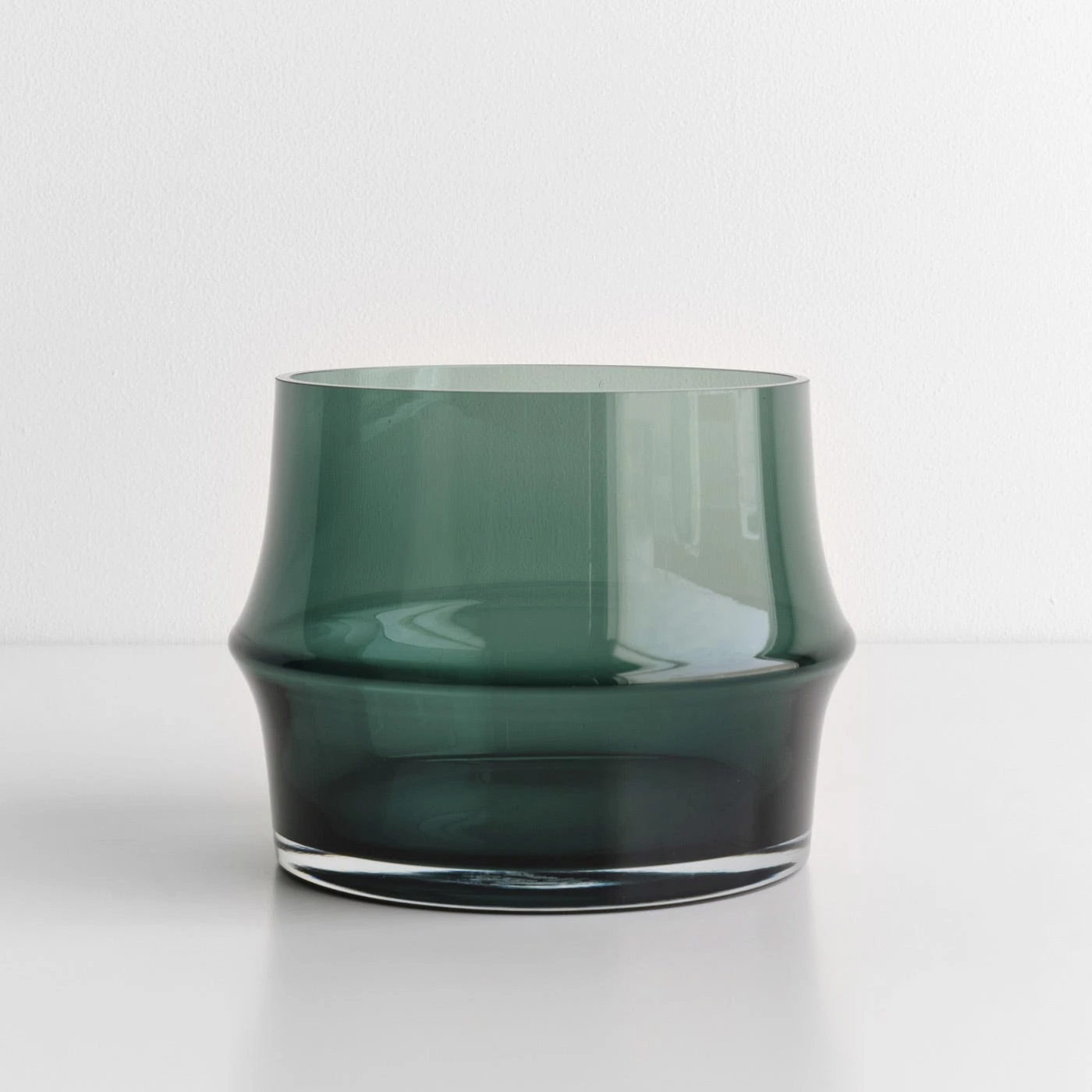 The Arc Green Flowerpot Low Vase features a distinctive, contemporary silhouette that elegantly displays blooms and greenery. This mini planter was designed by Sebastian Holmbäck, a Danish industrial designer, and created with Holmegaard’s unsurpassed hand-blown glass craftsmanship. Its stout silhouette is balanced by a center axis, with curved arcs extending toward the top and bottom. A clear, thick base adds stability while also creating an illusion of floating just above the table surface. The tint of this green vase complements lush greenery and floral blooms. Pair this compact vase or planter with the taller Arc Green Vase for a dynamic tabletop display.