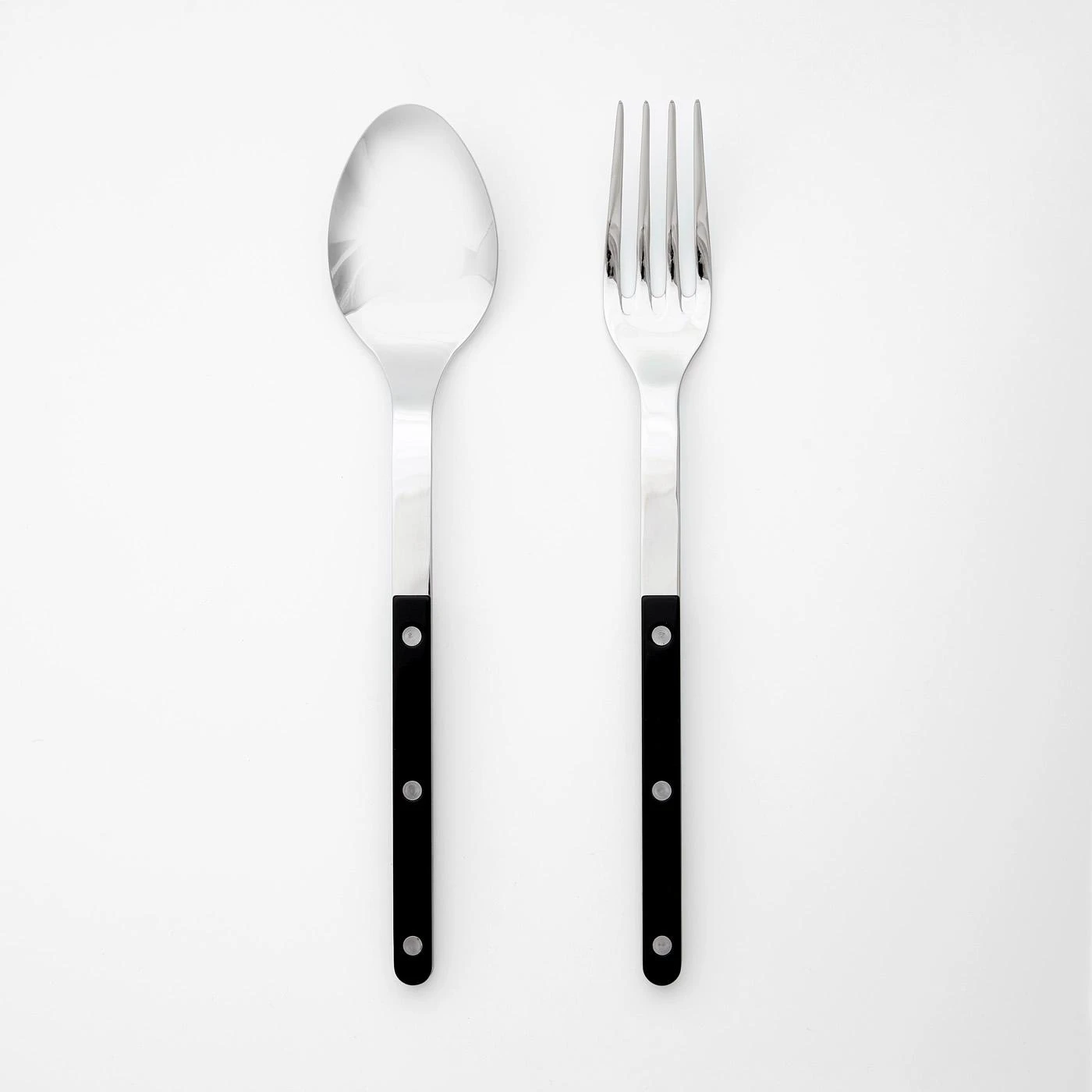 Your favorite dish deserves experience only the finest French cutlery artisans can provide. Part of the Bistro Flatware collection, this black two-piece serving set graces your plates with a stunning blend of stainless steel and black acrylic. Whether they’re used as salad servers or utensils for appetizers, each set is handmade to elevate your culinary experiences one bite at a time. Strong yet elegant, they’re dishwasher safe at low temperatures but made to tolerate high praise. Match them with our Bistro Flatware collections.