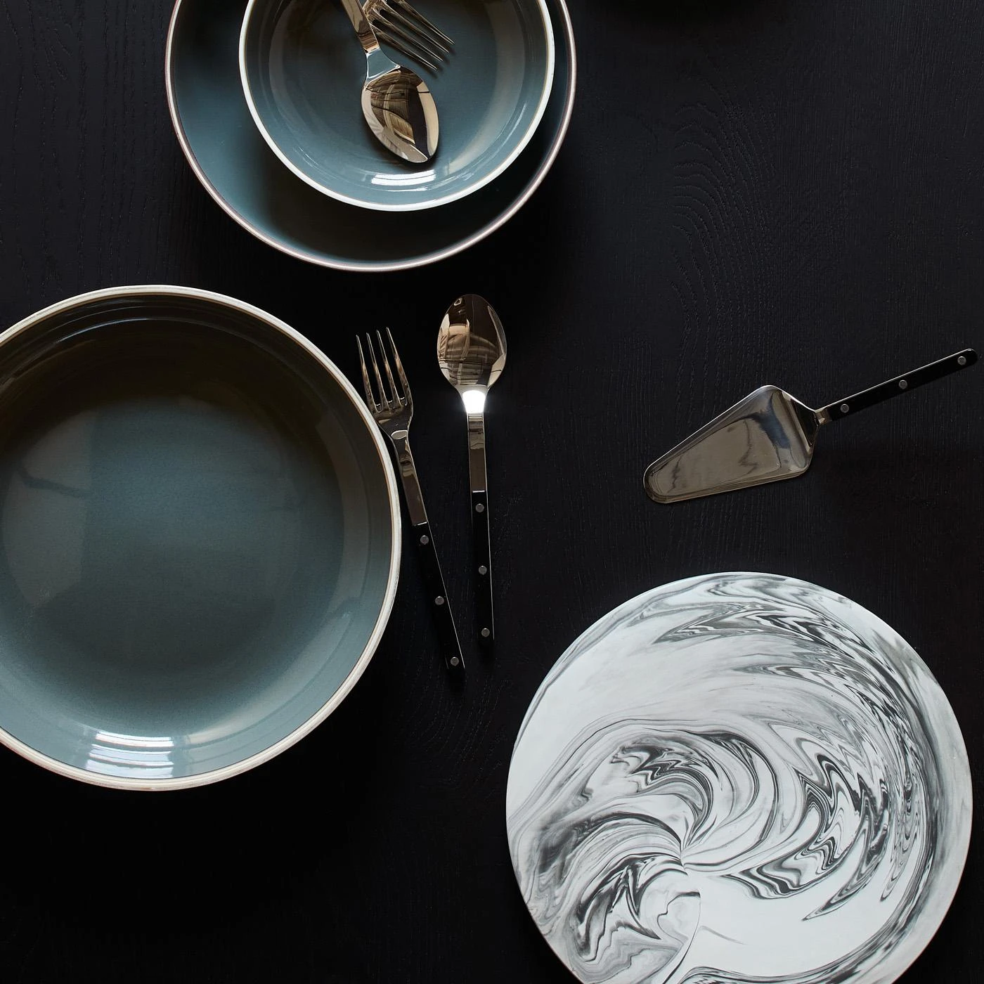 Beautifully curved at an angle to bring slices from pan to plate, this pie server makes an ideal pairing to your favorite desserts. Handmade in France from 18/10 stainless steel and black acrylic, inspiration for this server traces back to the clean, smart atmosphere of classic Parisian bistros. The Bistro Black Pie Server is dishwasher safe at low temperatures, making this your go-to serving piece for any night of the week.