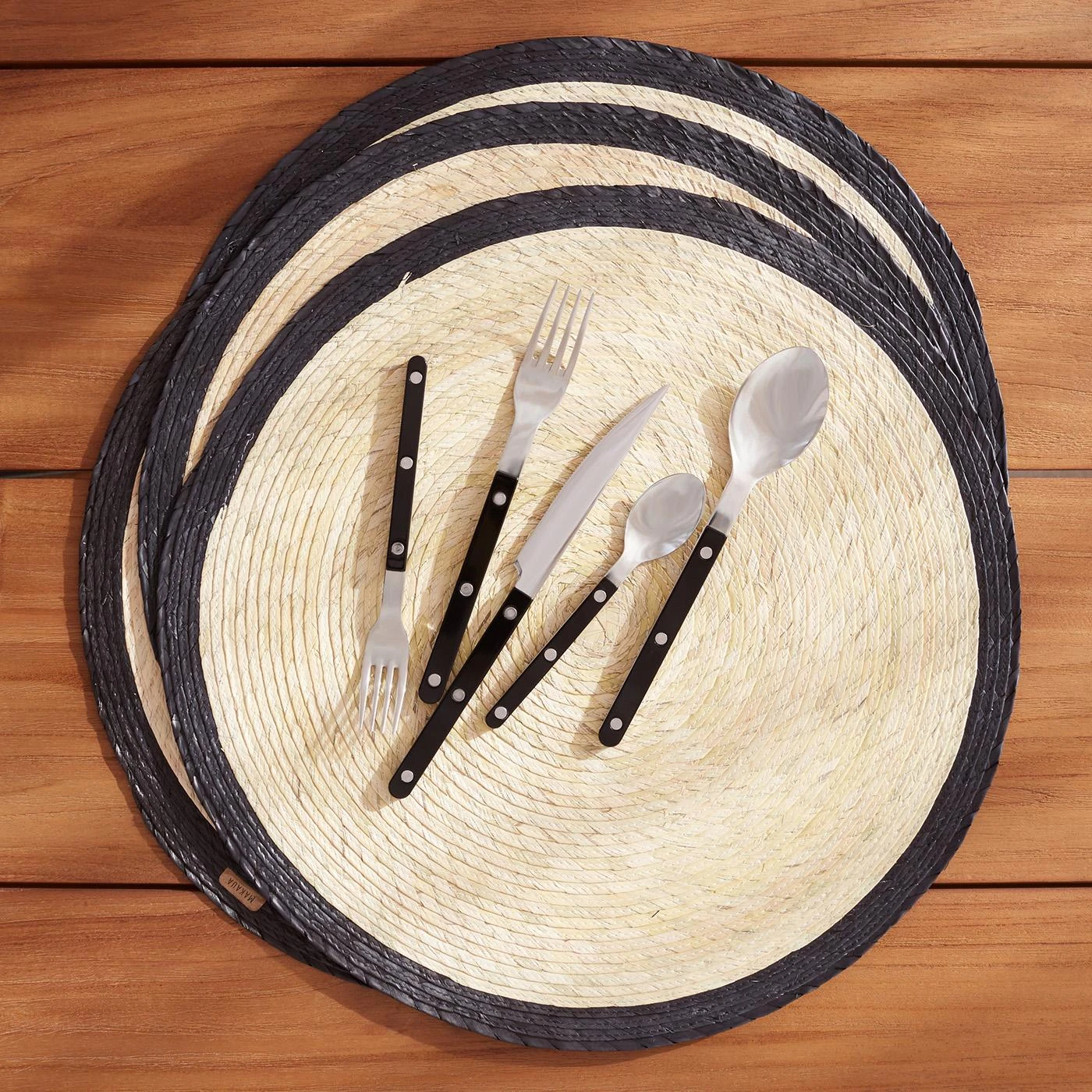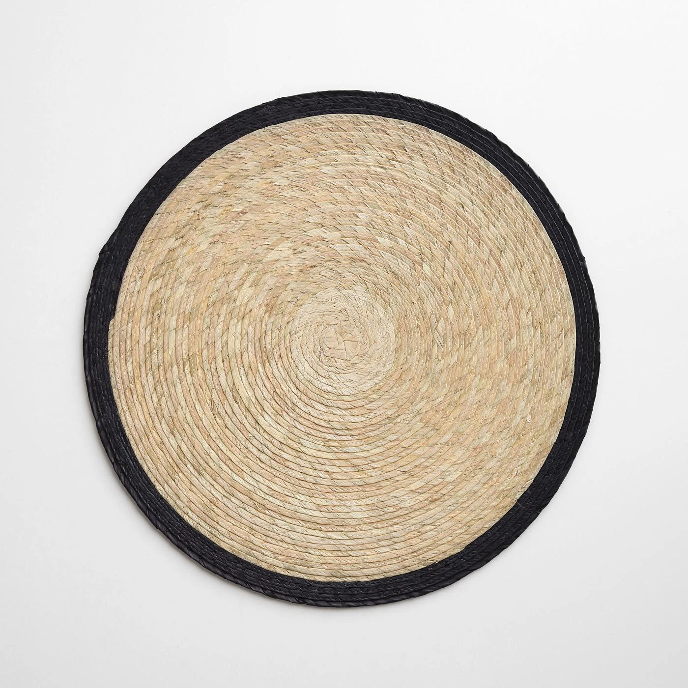 - Hand-braided natural and dyed palm leaves.