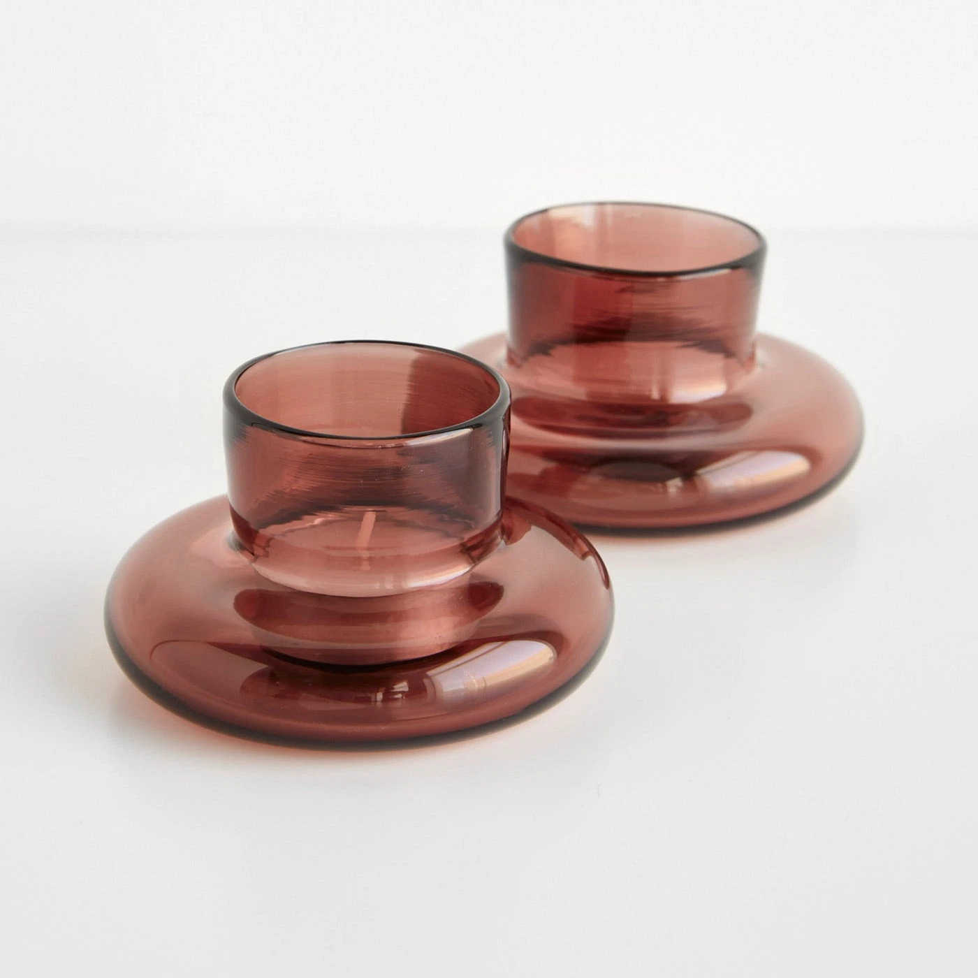 Handmade in Portland, Oregon by Gary Bodker Designs, these distinctive tealight candleholders add a creative touch to a tabletop, shelf or mantel. Each piece is unique, with organic curves and shapes that reflect light off the glossy glass surface. The rich, rose red color enhances the soft glow from the tealight nestled inside, while raised walls protect the flame from being extinguished. Select an array of tones from this collection to create a mix-and-match combination that’s colorful and fun. For an understated approach, set out these candleholders in a single coordinating hue.