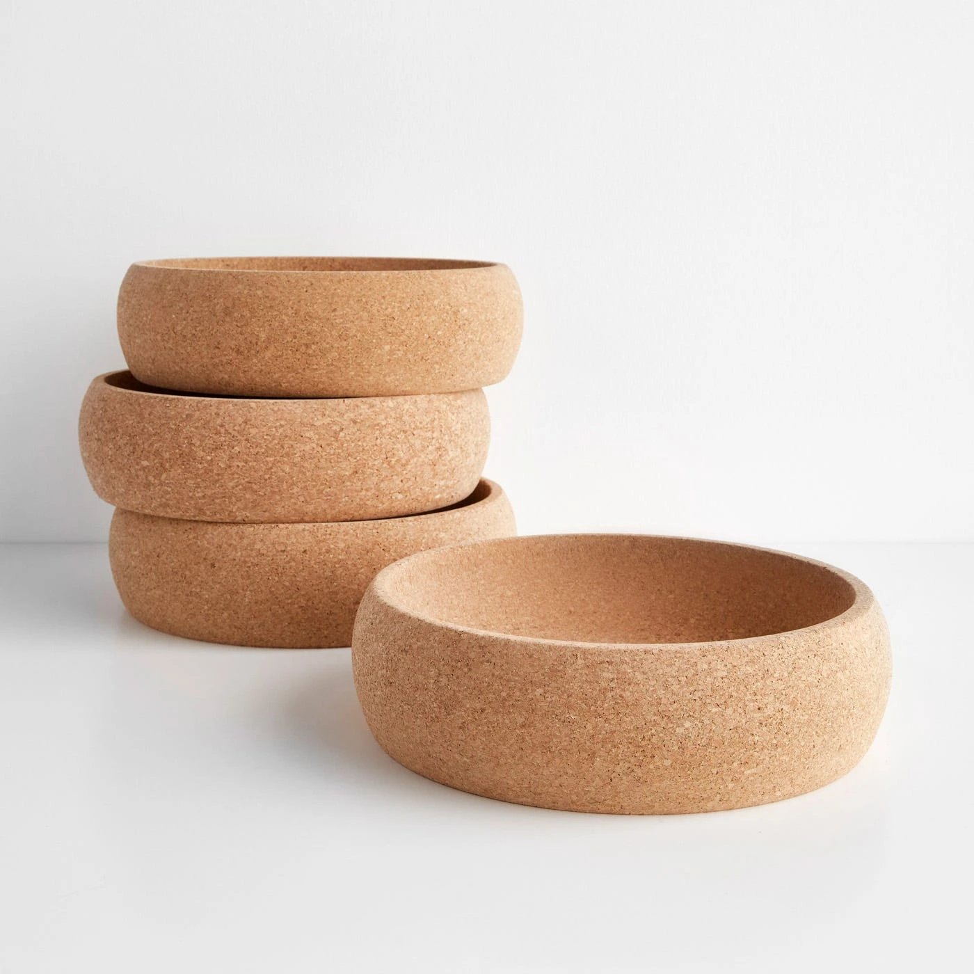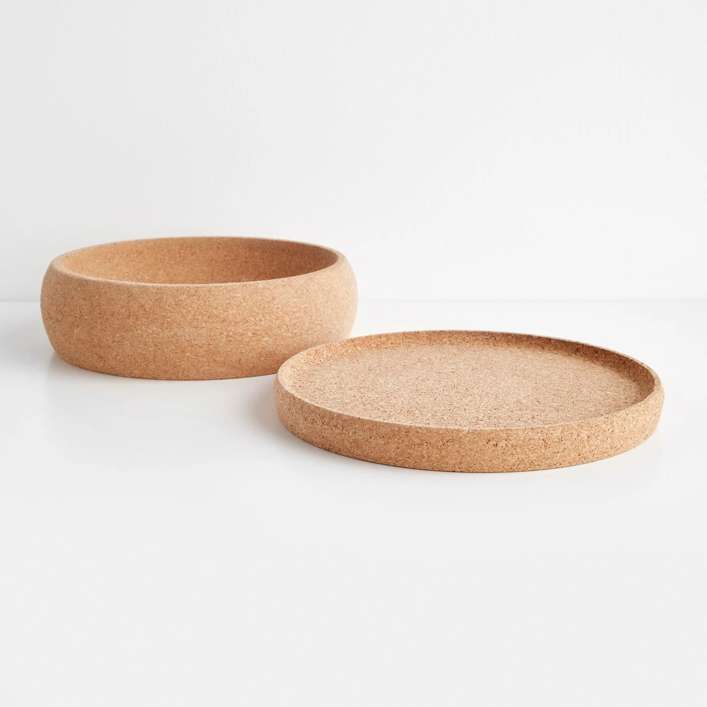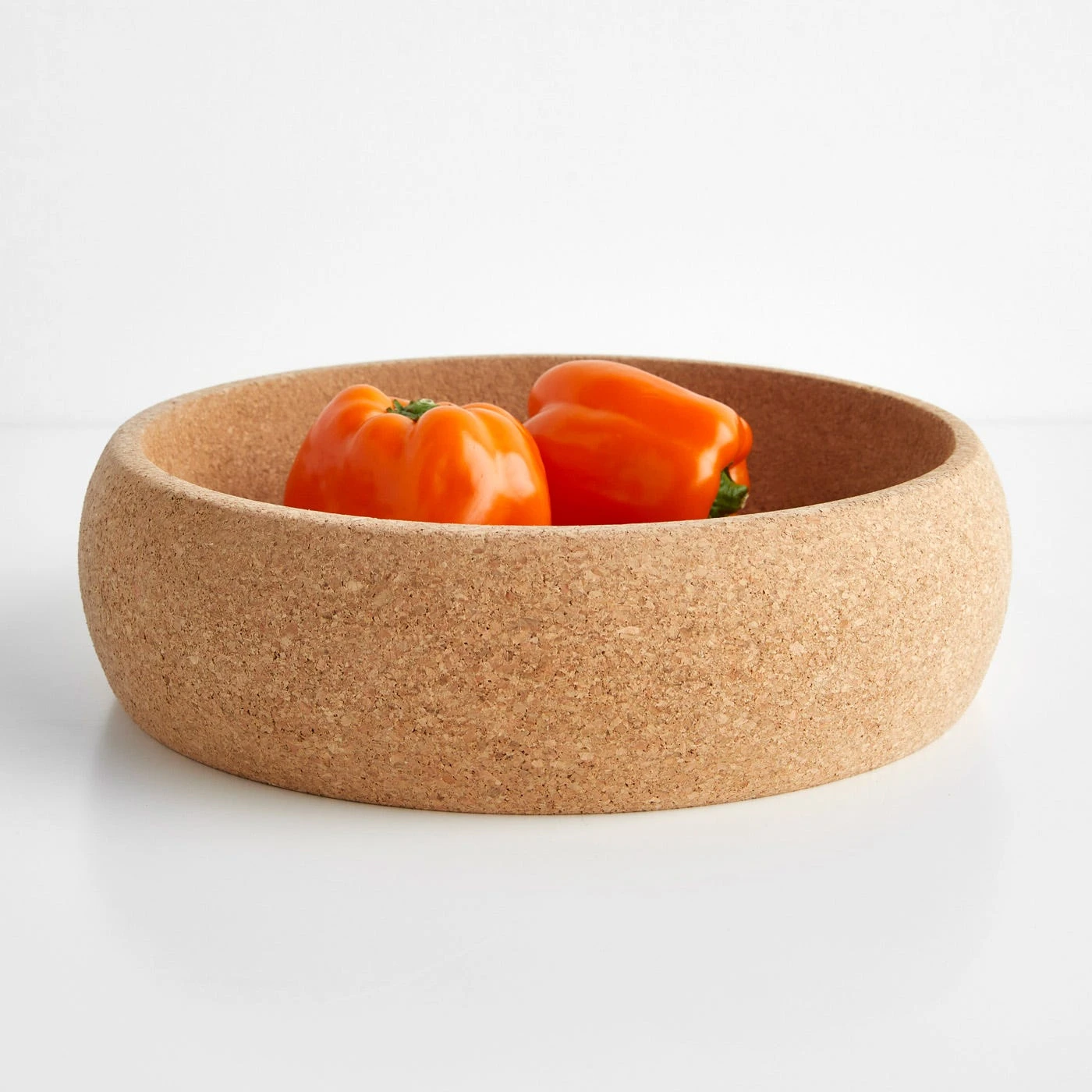 The Centerpiece Cork Bowl’s smooth, round shape and warm, earthy tone looks at home on any dinner table or countertop. Harvested in Portugal for centuries, cork is a remarkably versatile material that is 100% renewable, recyclable and biodegradable. The bark from cork oak trees is skillfully removed every nine to twelve years, allowing it to regenerate without harm. With minimal waste, the bark is processed into blocks and shaped, reprocessing any scraps along the way. The naturally antimicrobial and water repellent properties make this bowl durable and useful for serving, while the inherently organic texture and sculpted curves make it beautiful anywhere it is placed.