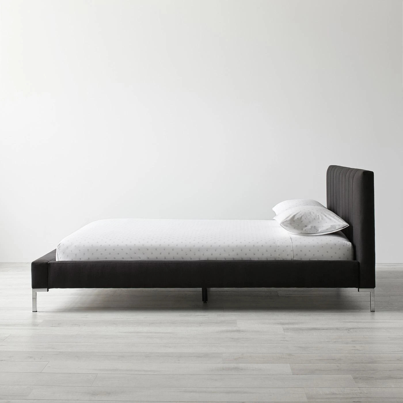 We’ve always believed in giving you the foundation for a good night’s sleep. The Channel Black bedframe and headboard delivers in spades. Crafted from fine pine, it’s sheathed in a poly-linen fabric blend, dipped in a moody black hue and etched with channeled, vertical detailing. Then there’s the boxed corners, the chrome steel legs, the minimal lines and the no-nonsense style. A bed this right helps you sleep good at night, for more reasons than one.