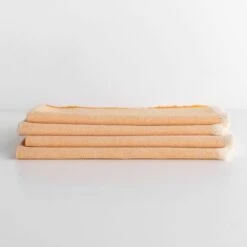 Feature Classico Marigold Napkins to enrich your table settings with vibrant color. Bold yellow threads are interwoven with natural-colored yarns to create a toned-down effect with a slightly textured appearance, and the sunny golden hue of the frayed edges creates a modern, color-block effect. Made by Mexican artisans, these lightweight table linens have a casual style suited to everyday dining. The thick, soft fabric creates a perfectly relaxed feel. Pair these yellow cotton napkins with the Wicker Marigold Placemats for a coordinated look for your table.