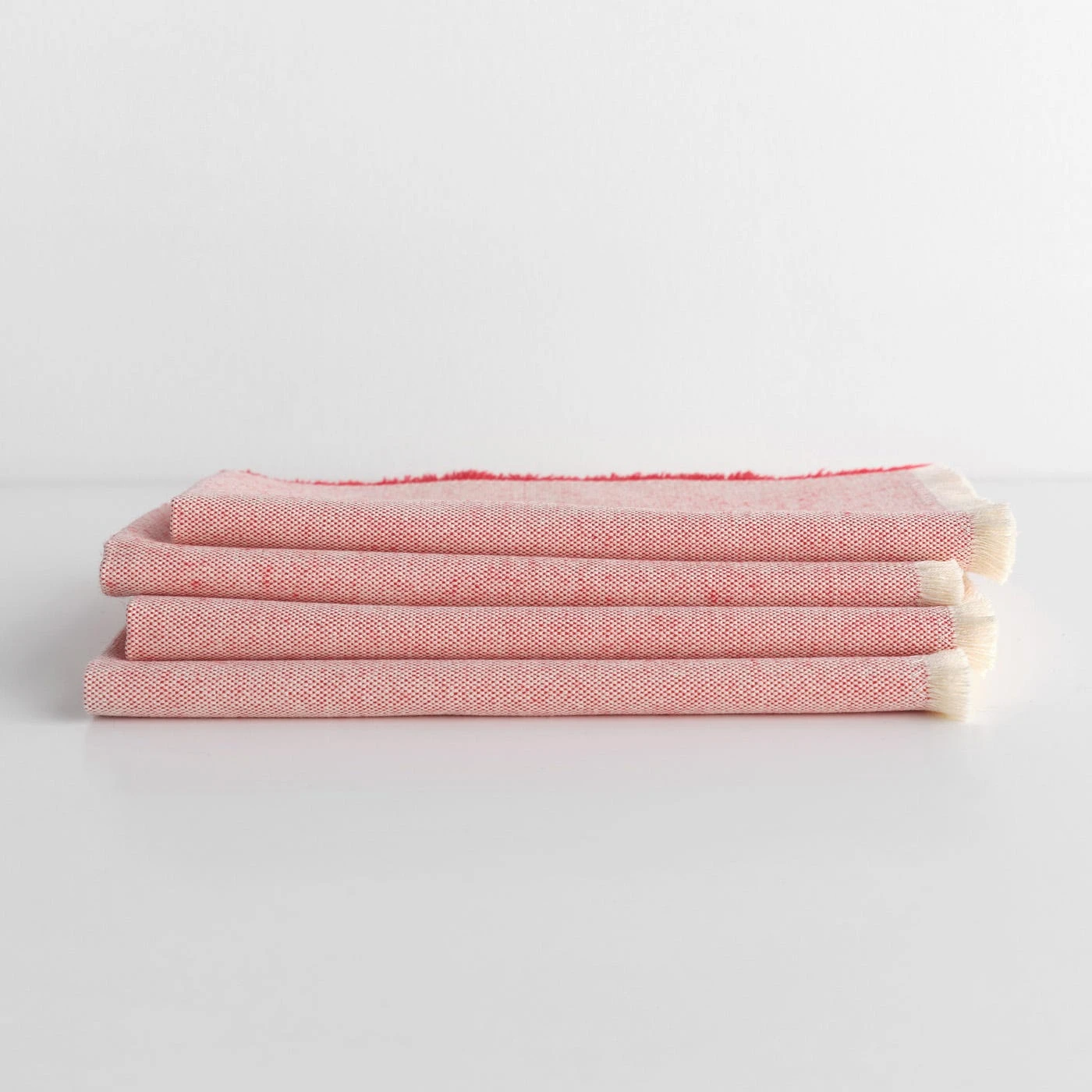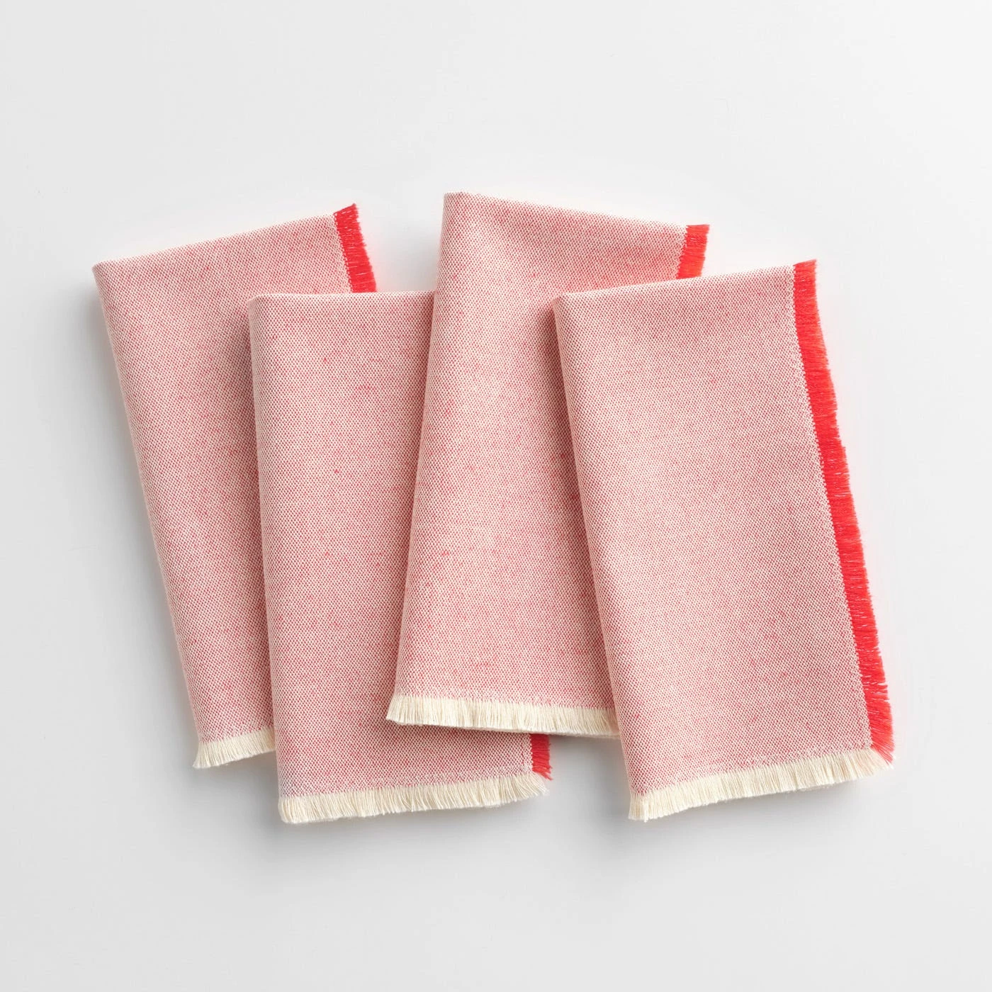Feature Classico Persimmon Red Napkins to enrich your table settings with vibrant color. Bold orange-red threads are interwoven with natural-colored yarns to create a toned-down effect with a slightly textured appearance, and the bright red color of the frayed edges creates a modern, color-block effect. Made by Mexican artisans, these lightweight table linens have a casual style suited to everyday dining. The thick, soft fabric creates a perfectly relaxed feel. Pair these red cotton napkins with the Wicker Persimmon Orange Placemats for a coordinated look with slightly varied warm tones.