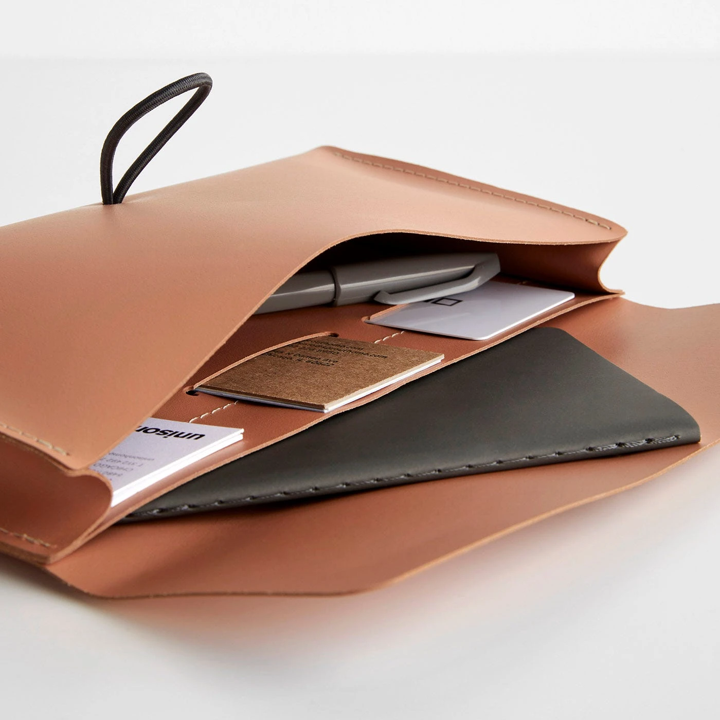 The Clay Leather Envelope Case is made in Spain and crafted from 100% recycled leather. The sustainable production process starts by recovering off-cuts discarded by the leather industry. After cleaning and compacting, the repurposed leather is bonded with latex and other natural fibers to ensure a level of durability that’s just as impressive as that of regular leather. This light brown case features a matching leather value, loop closure and a convenient center divider with three card slots. Sized just right for travel documents and passports, it’s a great gift choice for travelers.