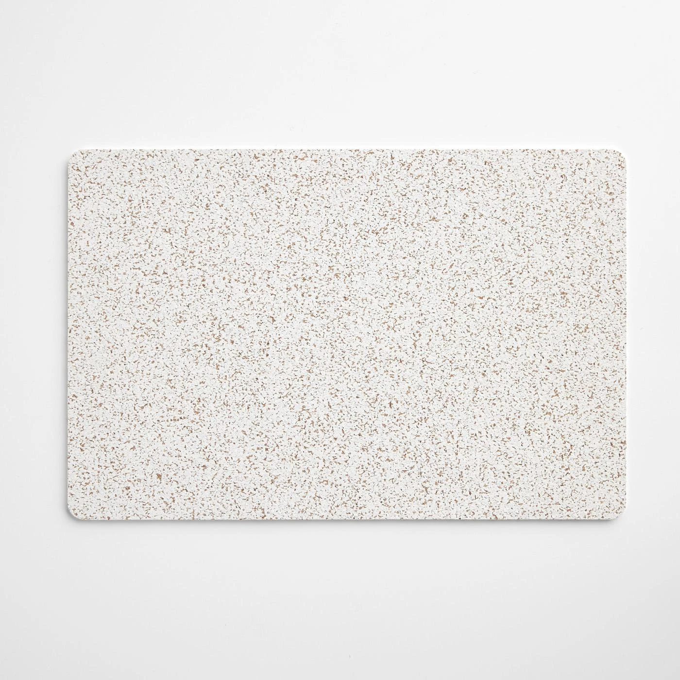Natural and neutral — this rectangular mat is very versatile too. In the kitchen it becomes a placemat or hot pad. In the office it’s a desk pad or blotter. Made in the USA from pressed cork and soft rubber excluding any binders or harmful chemicals, this mat is heat-resistant and features a natural cork texture that prevents objects from sliding. The soft white color combines with organic cork for a beautifully understated mat that emphasizes whatever is placed on top of it.