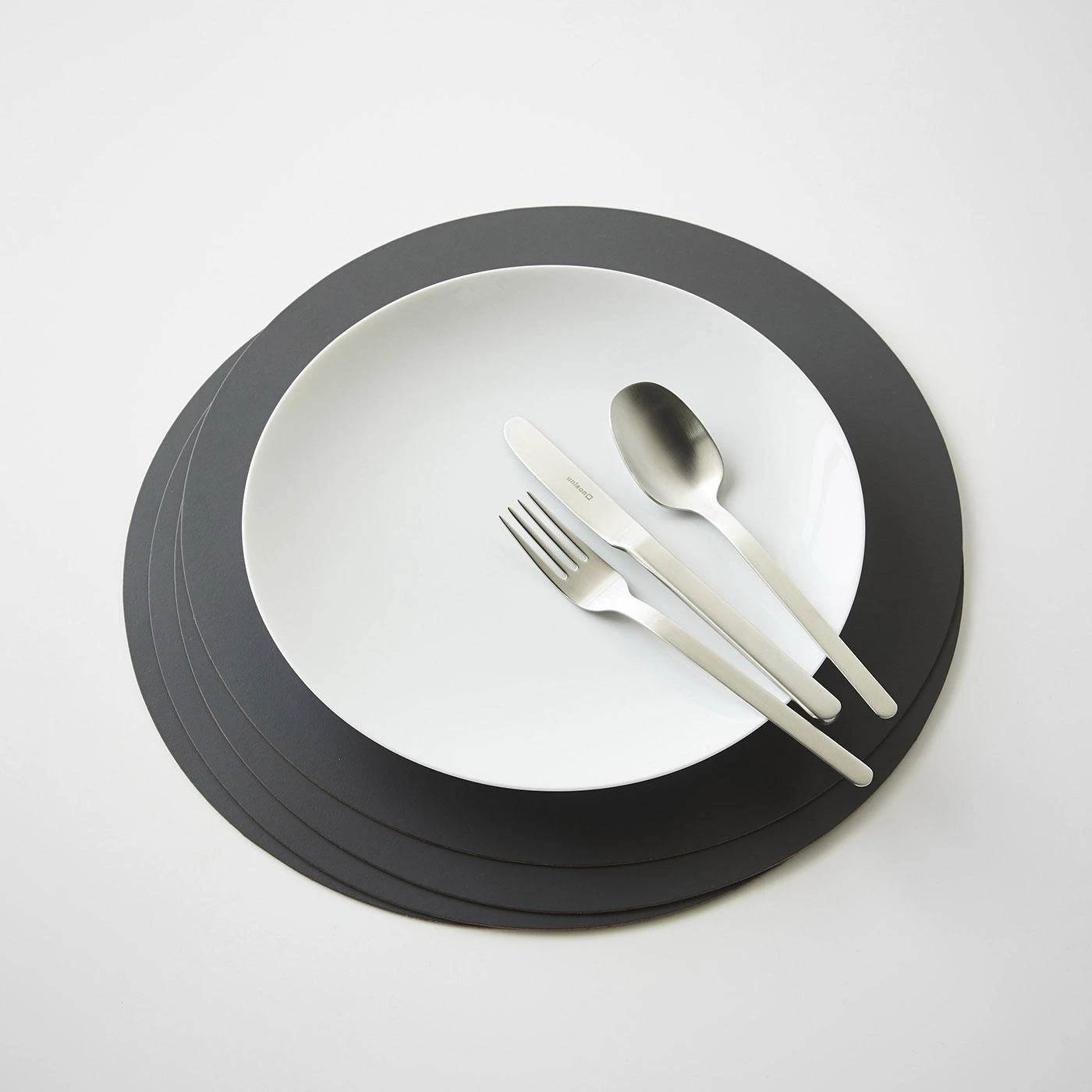 Things come full circle with these recycled leather placemats, crafted in Spain. In the production process of this material, off-cuts discarded by the leather industry are given a second life. These scraps are recovered, cleaned, compacted and bonded with latex and other natural fibers before being transformed into a new sustainable and environmentally-friendly material of the same durability as regular leather. In charcoal, they give your place settings a calming, neutral anchor.