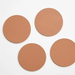 Protect your tabletops while doing good for the planet with the Dot Clay Round Leather Coasters. Made in Spain from 100% recycled leather, each coaster begins with discarded leather straps which have been cleaned and compressed before undergoing a bonding process with natural fibers and latex. This creates a new, environmentally friendly material which looks and feels like regular leather while exhibiting the same high level of durability. The timeless light brown shade appears understated yet refined. Pair with matching Dot Leather Coasters and Leather Napkin Holders.