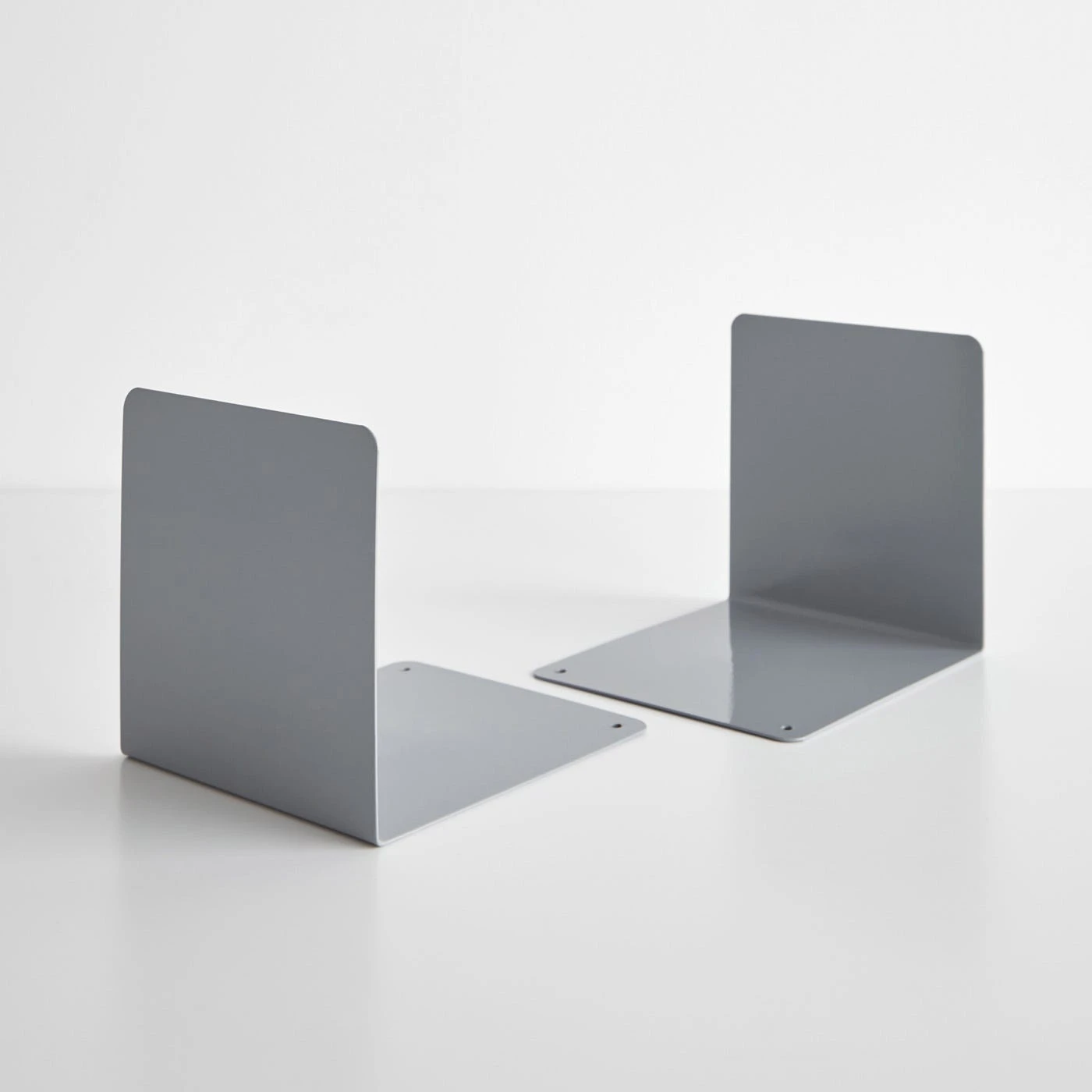 These minimalist steel bookends can fit in anywhere. This steel set of bookends is versatile enough for any room you choose — your home office, living room and in the bedroom. Made in Italy, the neat lines of these bookends form a classic L-shape designed to keep your books in place. Clean, timeless and modern, these bookends have a glossy powder coat on the steel to give them a little extra dimension. Sleek and solid, these gray bookends are the ultimate minimal accessory for your bookshelf.