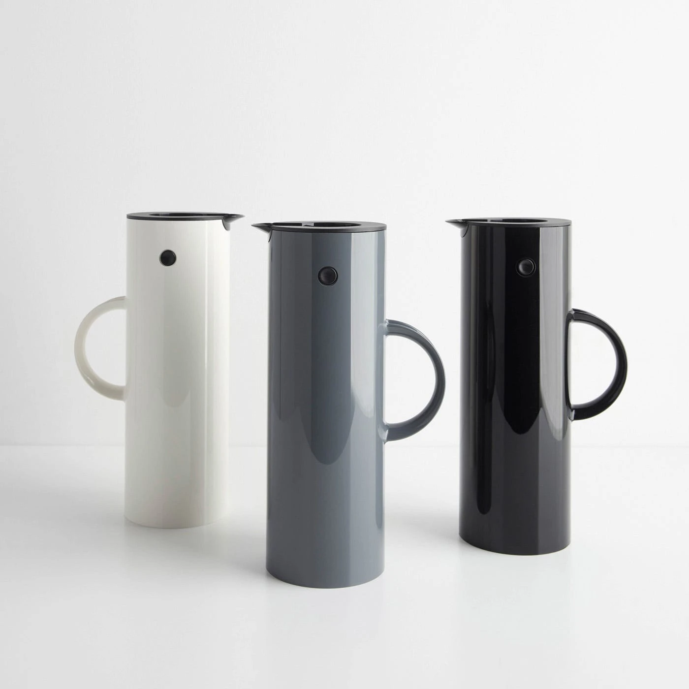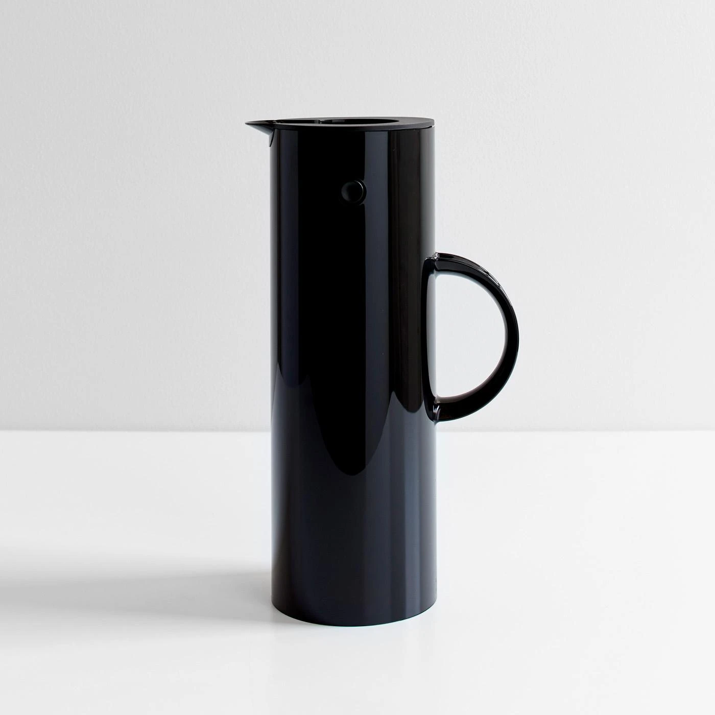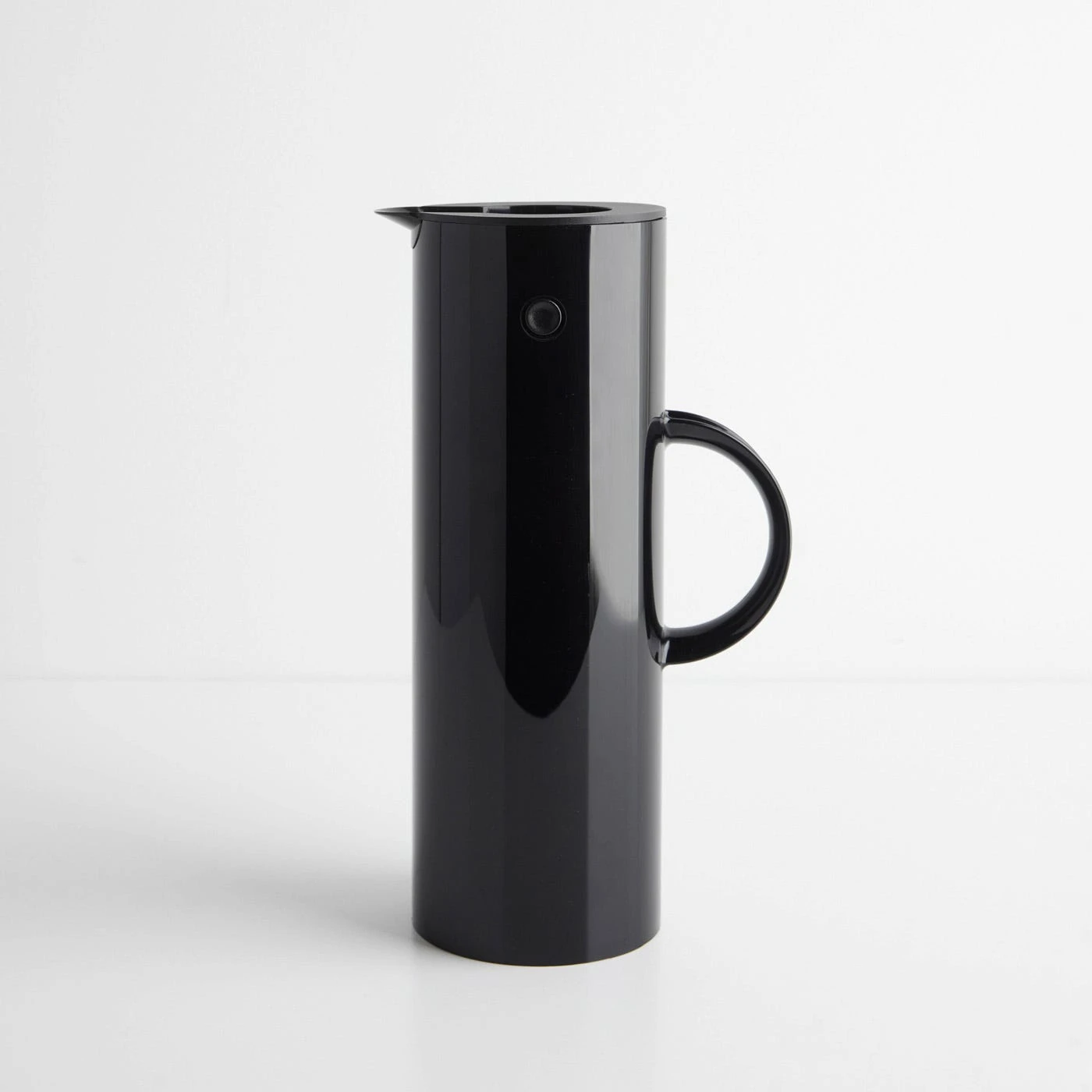 Originally developed by Danish designer Erik Magnussen in 1977, the EM77 Black Vacuum Jug is a useful and practical thermos-style jug that keeps hot beverages hot and cold drinks cold. Made with a plastic body and inner glass sleeve, Magnussen intentionally chose these materials to make his product long-lasting and affordable. With its rocker stopper that allows for an easy, one-handed pour, and additional screw cap that can be used to keep the jug sealed when on the go, the EM77 Vacuum Jug is a timeless design that continues to enhance everyday life.