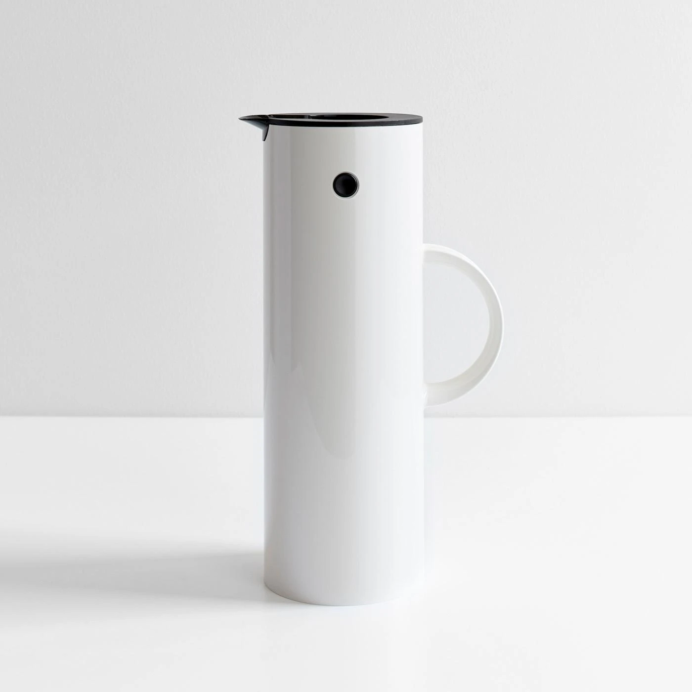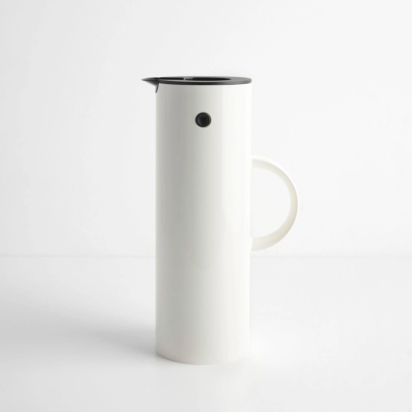 Originally developed by Danish designer Erik Magnussen in 1977, the EM77 White Vacuum Jug is a useful and practical thermos-style jug that keeps hot beverages hot and cold drinks cold. Made with a plastic body and inner glass sleeve, Magnussen intentionally chose these materials to make his product long-lasting and affordable. With its rocker stopper that allows for an easy, one-handed pour, and additional screw cap that can be used to keep the jug sealed when on the go, the EM77 Vacuum Jug is a timeless design that continues to enhance everyday life.