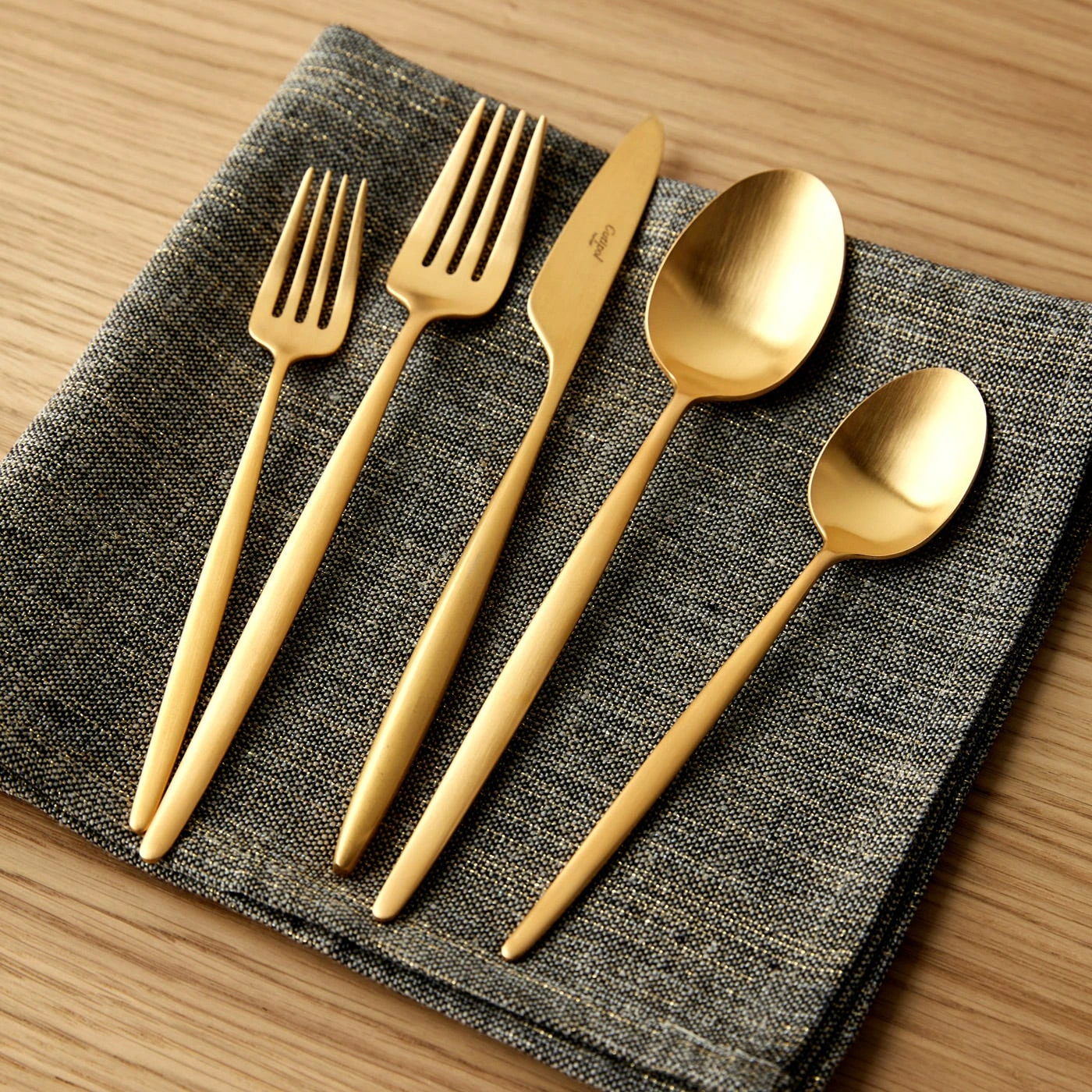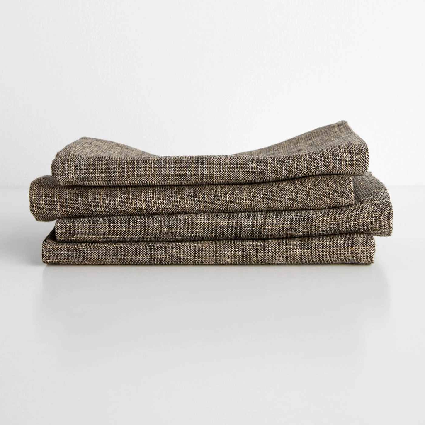Add soft texture to the table with the Etoile Black and Gold Napkin. Made from a high-quality, heavy linen blend that gets softer with every wash, this black dinner napkin is interwoven with gold-toned metallic threads to incorporate subtle shimmer into place settings. These high-quality fabric goods are made by Charvet Editions in Northern France in what’s been known as the “city of canvas” since the Middle Ages. Each one is woven and sewn in their century-old factory, connecting back to a long history of textile craftsmanship.