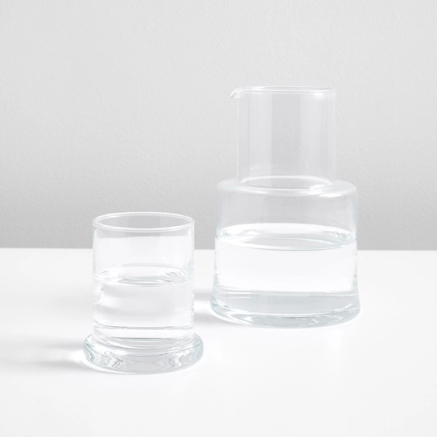 There’s an art to having overnight guests, and a few thoughtful elements is key. Enter this petite carafe set, a welcome to the nightstand that lets guests know their every need is attended to. Made of sturdy soda glass, the tumbler nests within the carafe when not in use and saves space for those other bedside necessities. It’s the kind of modern yet timeless touch that will be remembered.