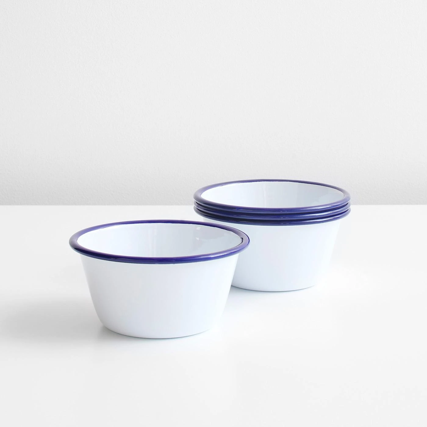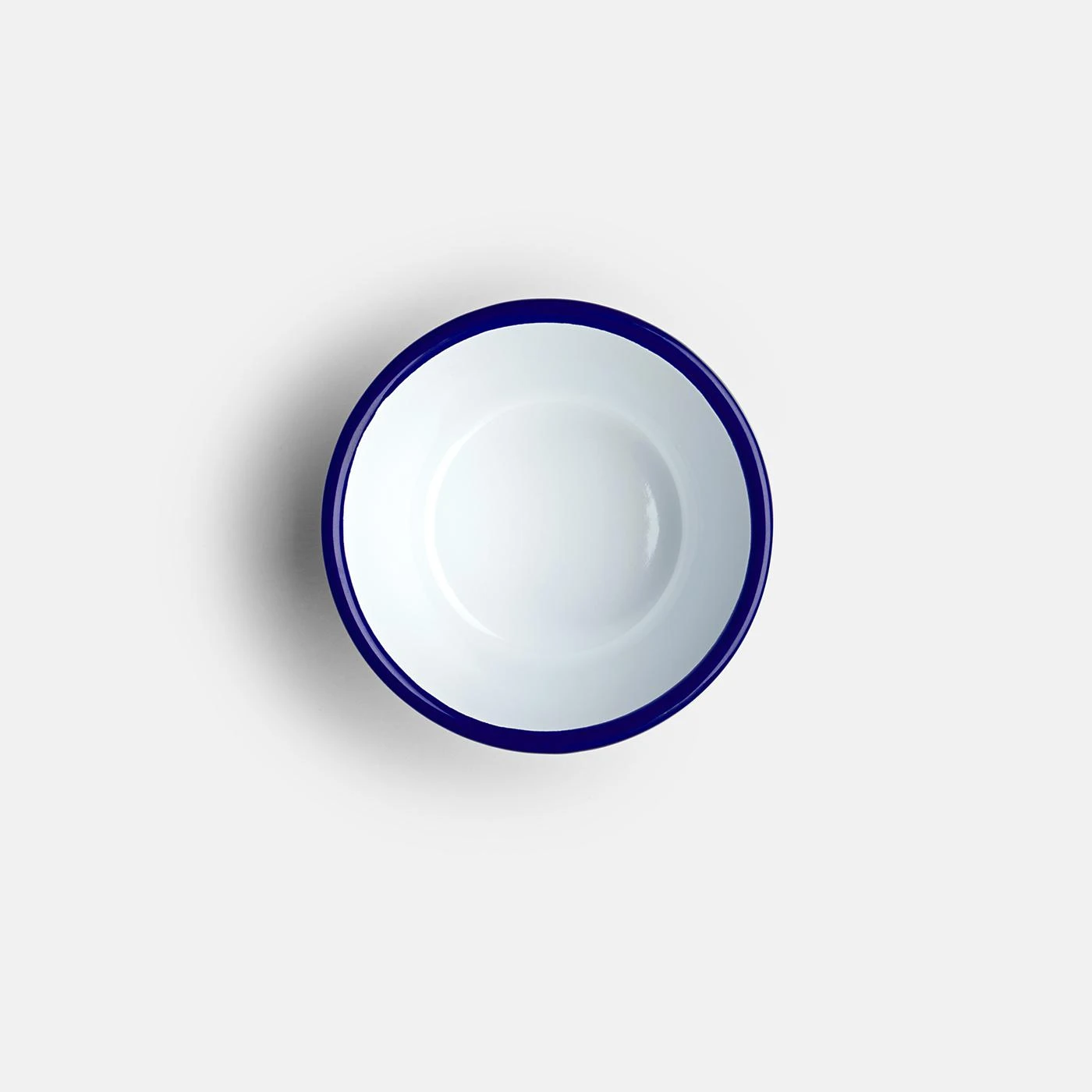 Falcon Enamelware has been an icon of British home life since the 1920s and continues to be a dinnerware staple today. These designs are notable for their porcelain enamel coating that is fused onto heavy-gauge steel to deliver enduring strength, smoothness and chemical resistance. The Falcon White Enamelware Bowls feature blue rims that classically contrast the crisp white interior and exterior, a color combination that is designed to last.