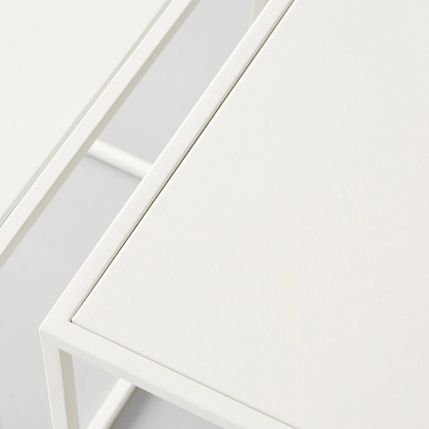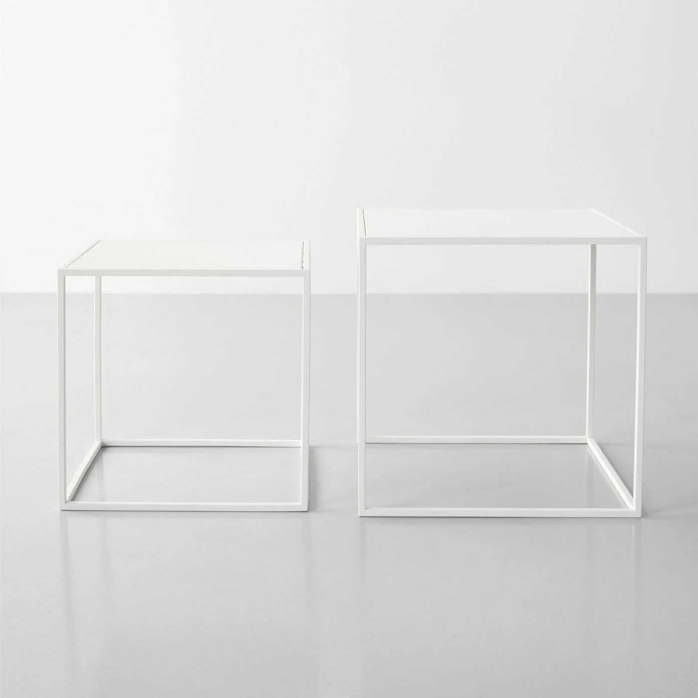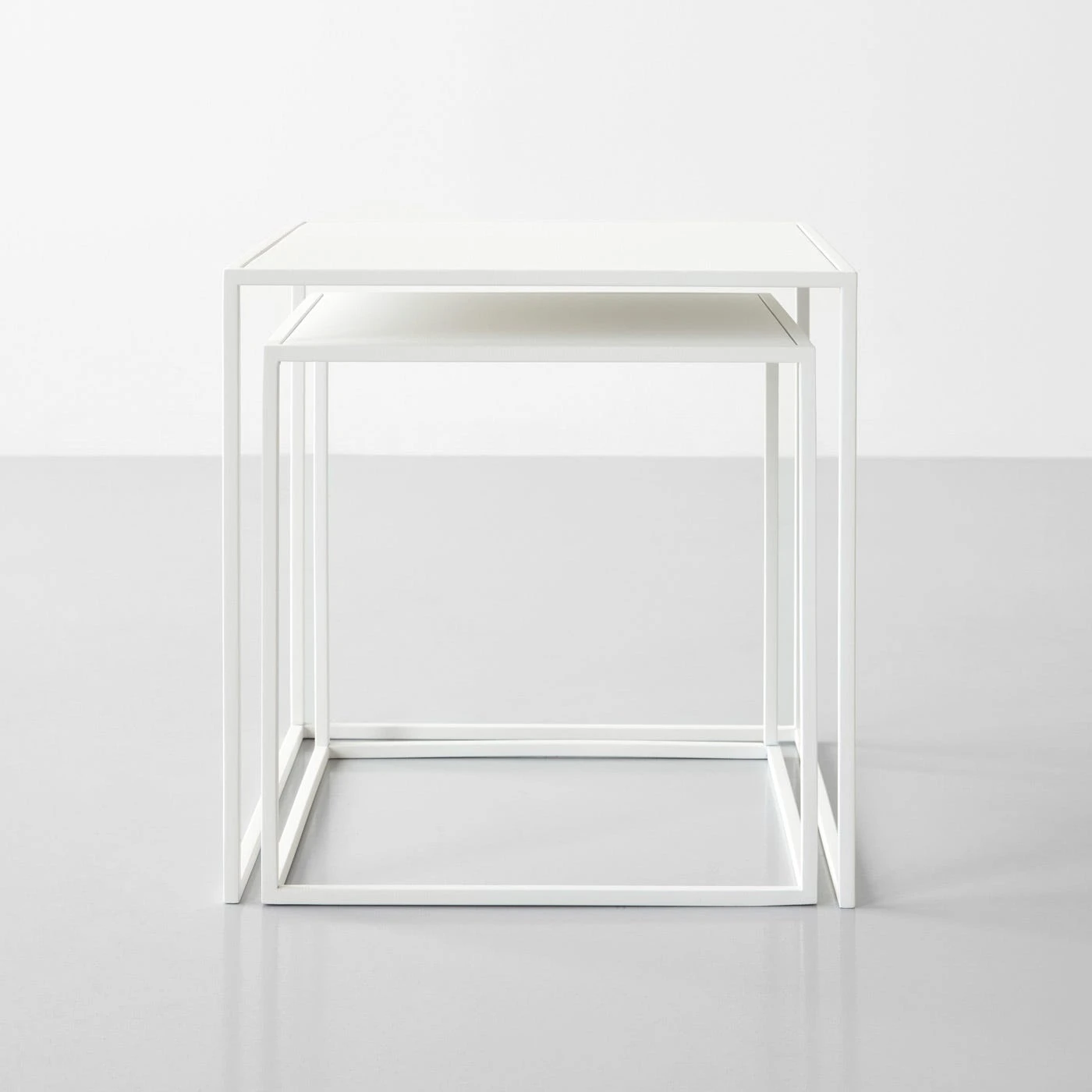 Simple and striking, these nesting tables add dimension to any room. Nestle them up alongside a favorite reading chair to hold your morning tea. Place a set on either side of the bed for a modern twist on a nightstand. Or stretch them out in front of the sofa for a versatile coffee table. The white powder-coated steel top is durable and practical. These nesting tables embody unmatched usability and effortless style.