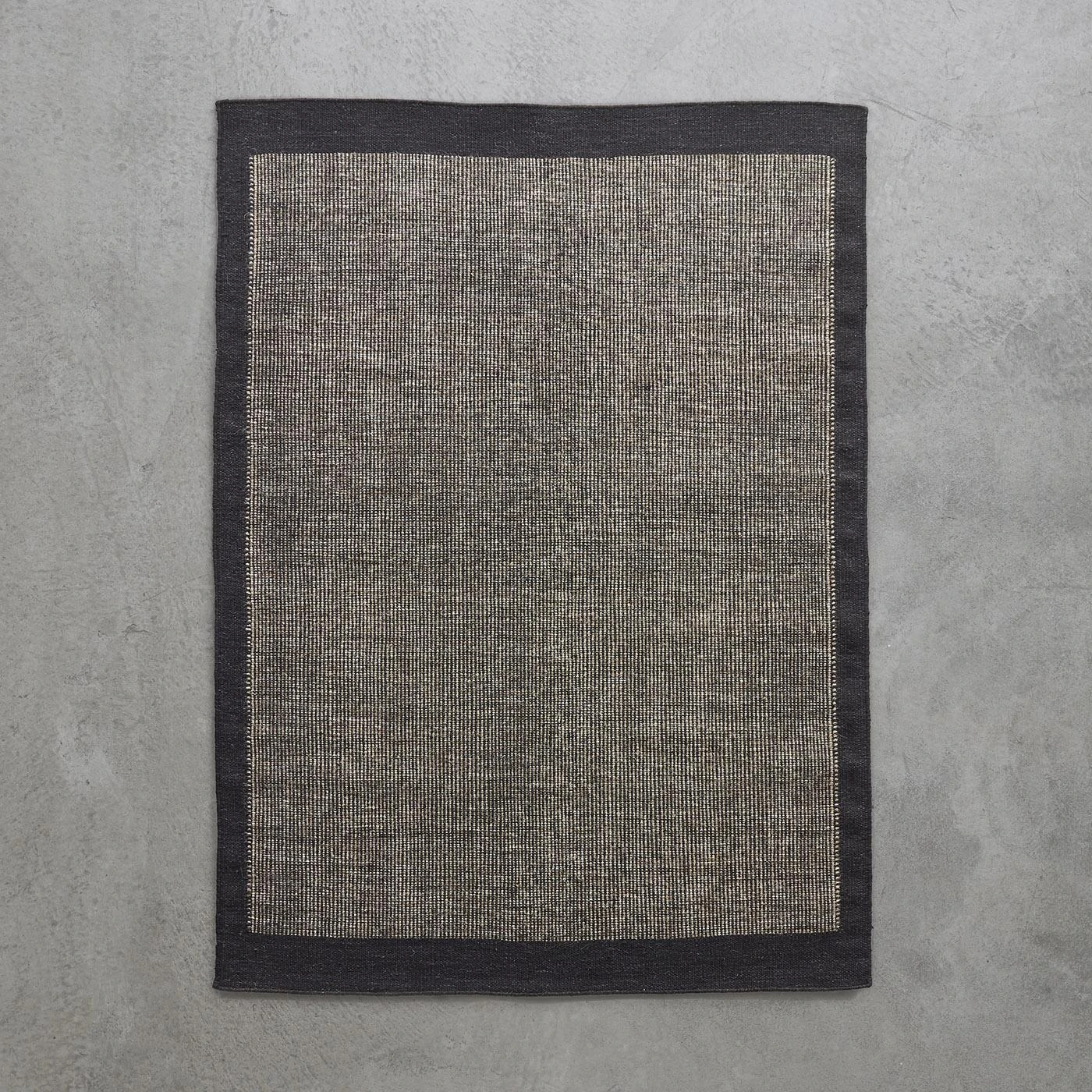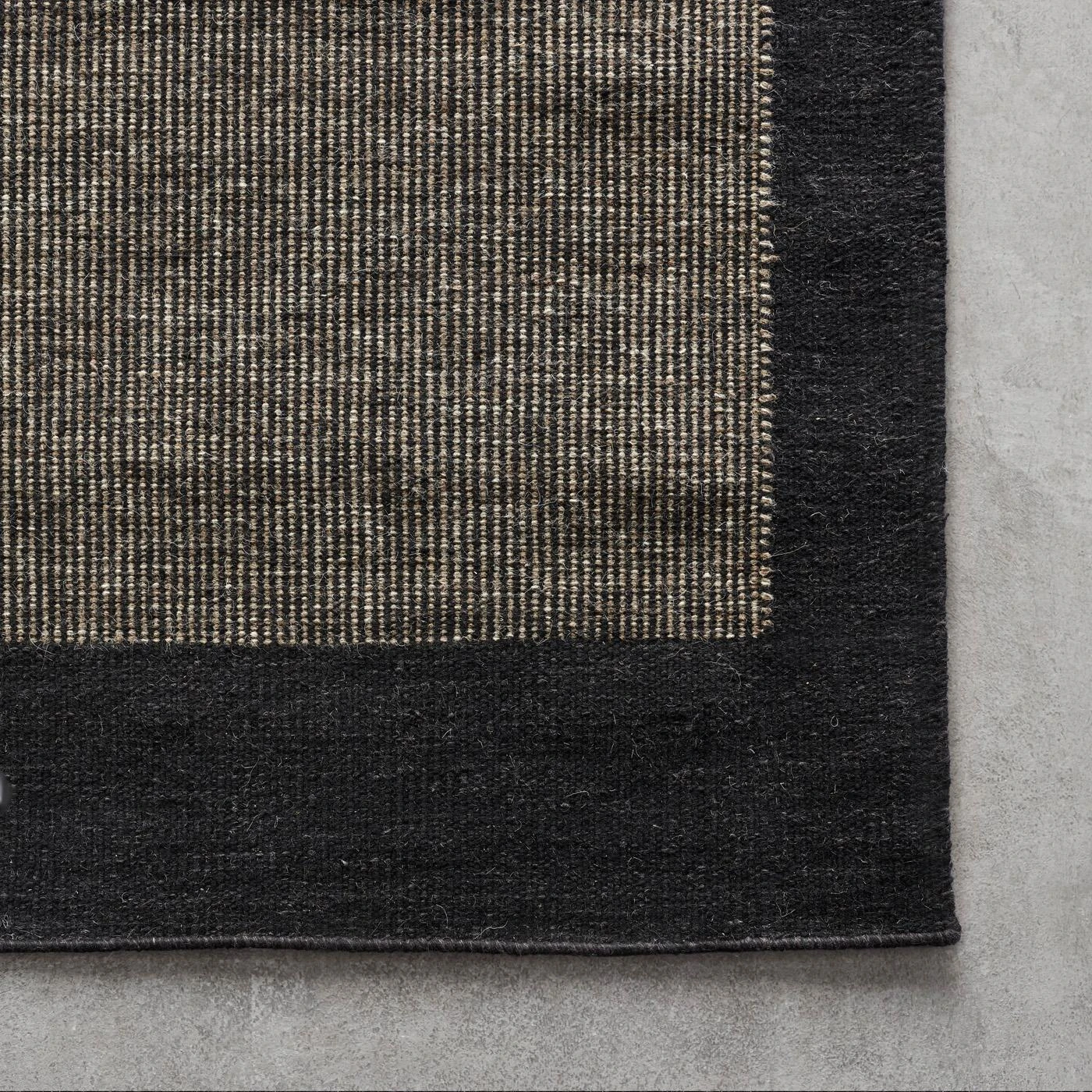 Natural and neutral, this black rug brings modern warmth into the home. Woven by hand, this 100% wool rug is a quality piece that’s crafted to last. Its flatweave design is reversible and durable, making it ideal for high traffic areas. The simple two-toned pattern easily conceals small spills and the entire rug can be reversed to the opposite side for maximum and even wear.