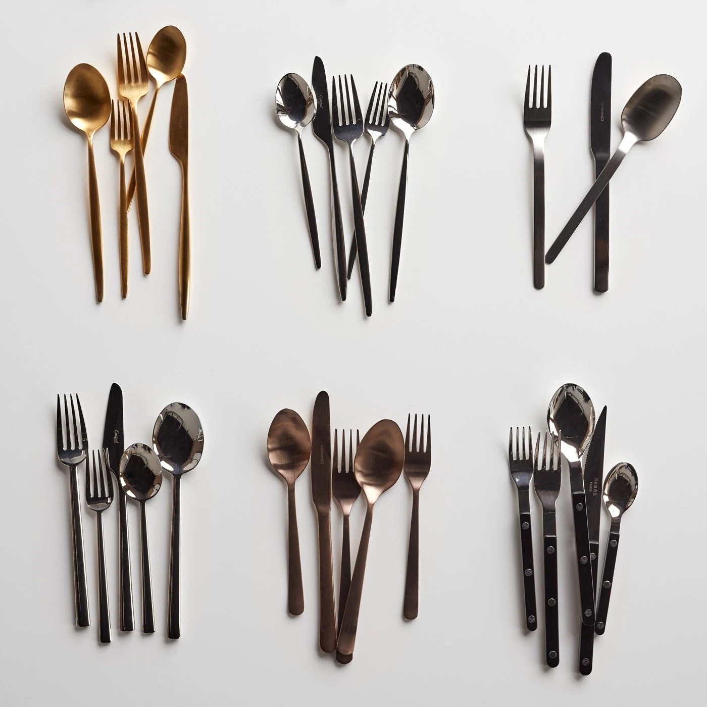 Set a place at the grown up table with this comment-worthy 5 piece placesetting in electro-plated 18/10 stainless steel. Designed in Portugal, giving top priority to design, elegance, and functionality. This set is no exception. Its sleek silhouette is both uniquely striking and comfortable in the hand, while a matte copper finish delivers a luminous punch of striking style. Bon apetite!