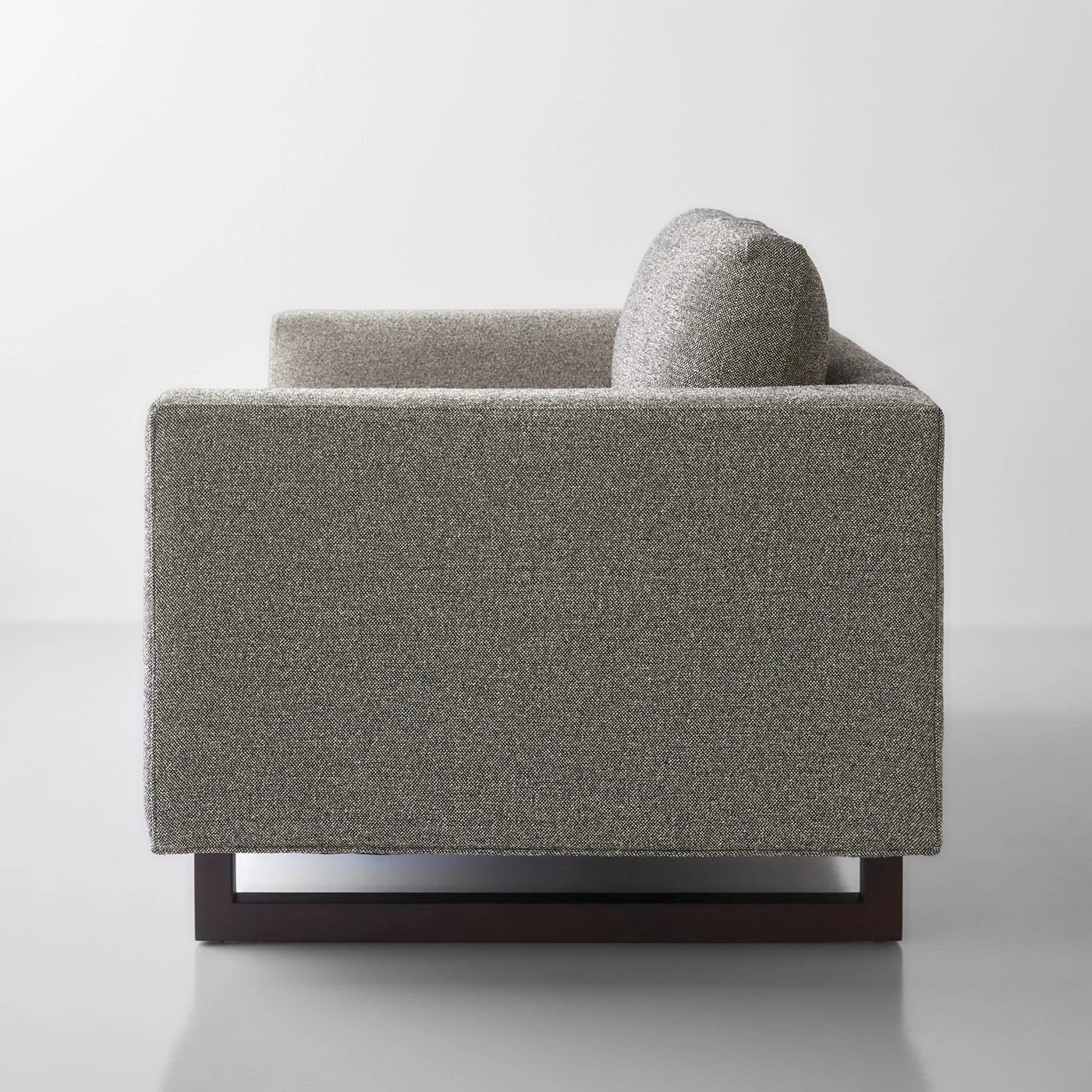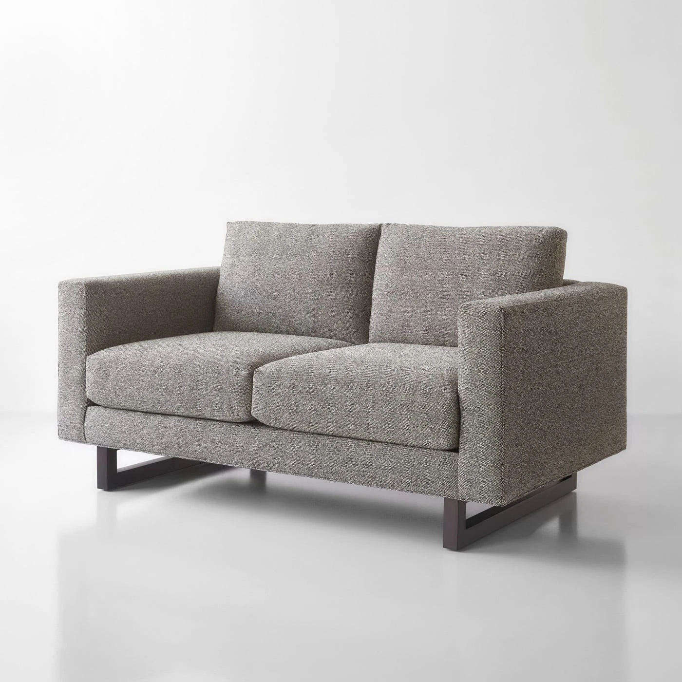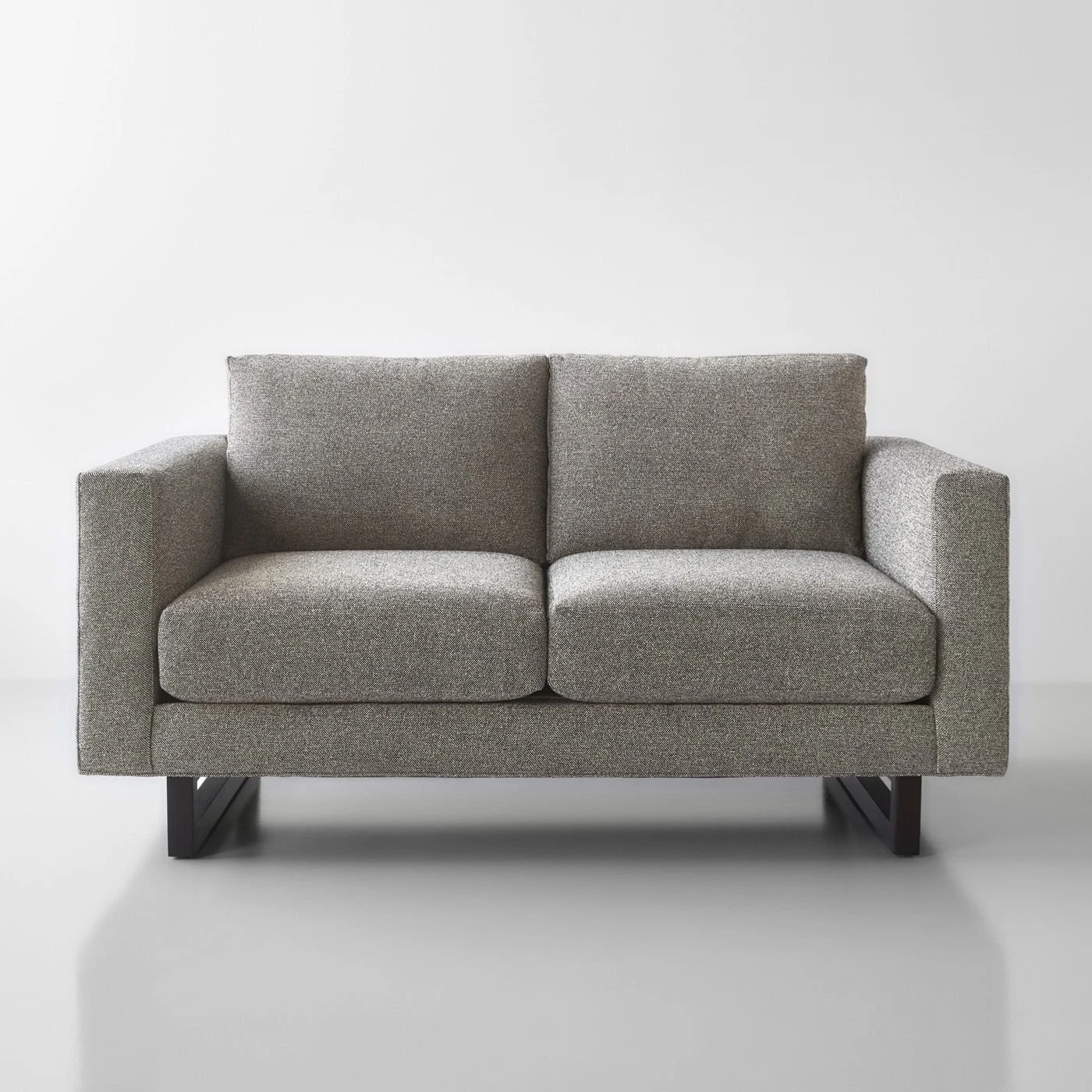 The Grange Tweed Black Loveseat is ideal for smaller spaces or adding more seating alongside a full-size sofa. The tailored lines and single bench seat offer a clean, minimalist look. With its plump, supportive cushions, thick track arms and slightly pitched back, this loveseat delivers inviting comfort day after day. Heavy-duty Donegal tweed upholstery fabric is soft and slightly textured, and thoughtful details include top-stitched French seams, minimal welt, a solid maple frame and no-sag springs. This loveseat is hand-built in North Carolina, ensuring quality craftsmanship.