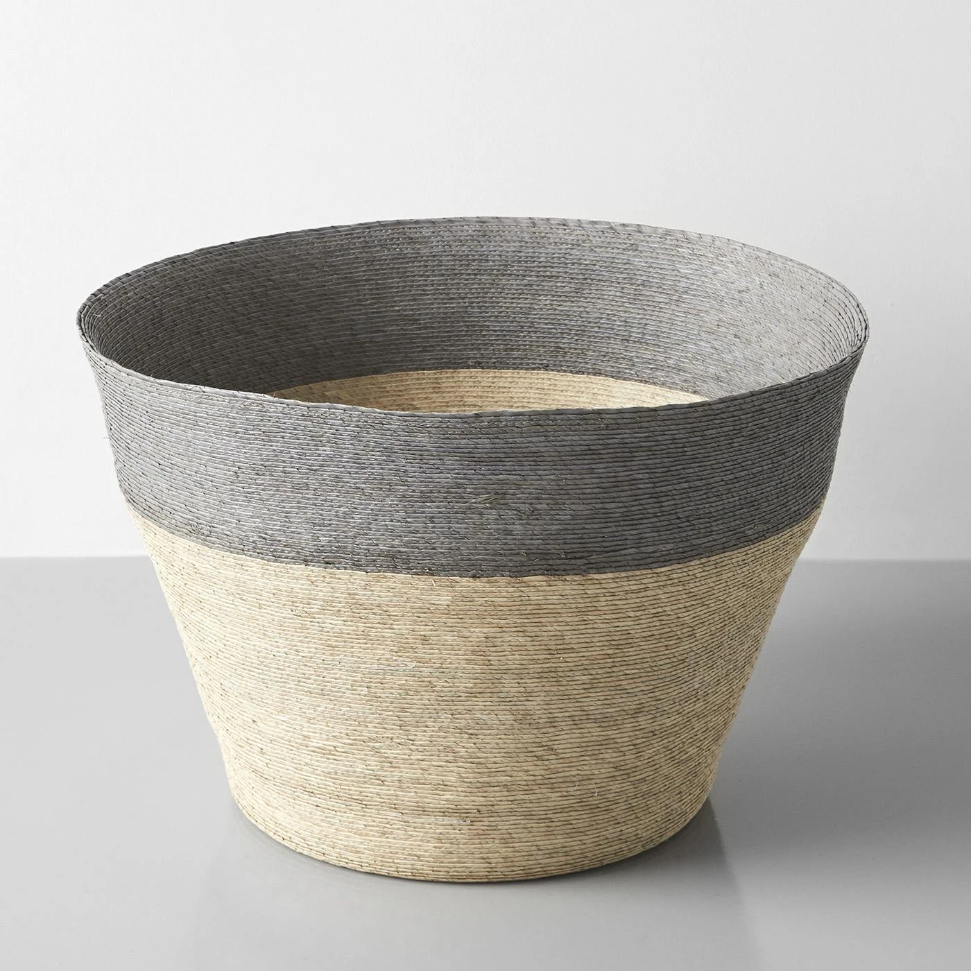 Beautifully crafted, this gray floor basket is steeped in a rich cultural heritage. Using a handweaving process passed down from generation to generation, Mexican families have been making these baskets for hundreds of years. More than 500 families have benefitted from the success of Makaua Baskets since its start in 2002. Add a refined warmth to any room with this natural palm leaf floor basket. It’s large enough to store a throw blanket or a stack of reading material. An ideal blend of modern tradition, this basket layers quality craftsmanship into your home.
