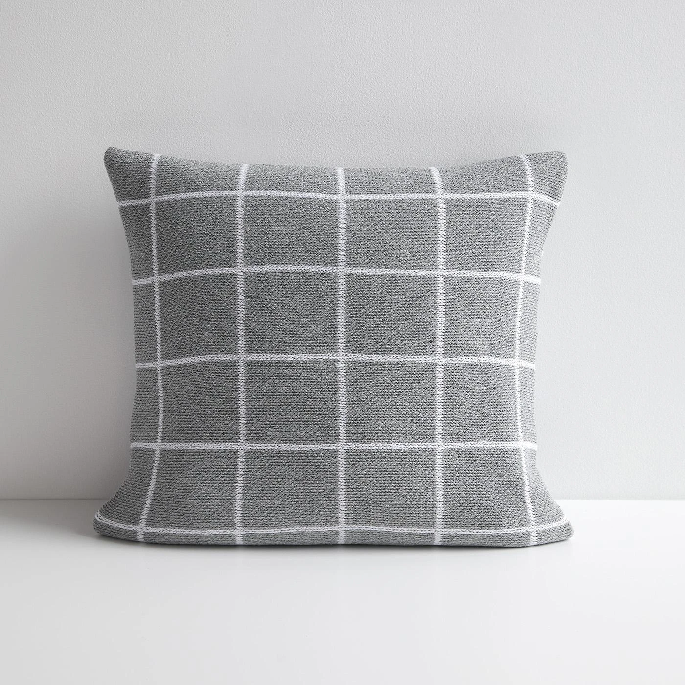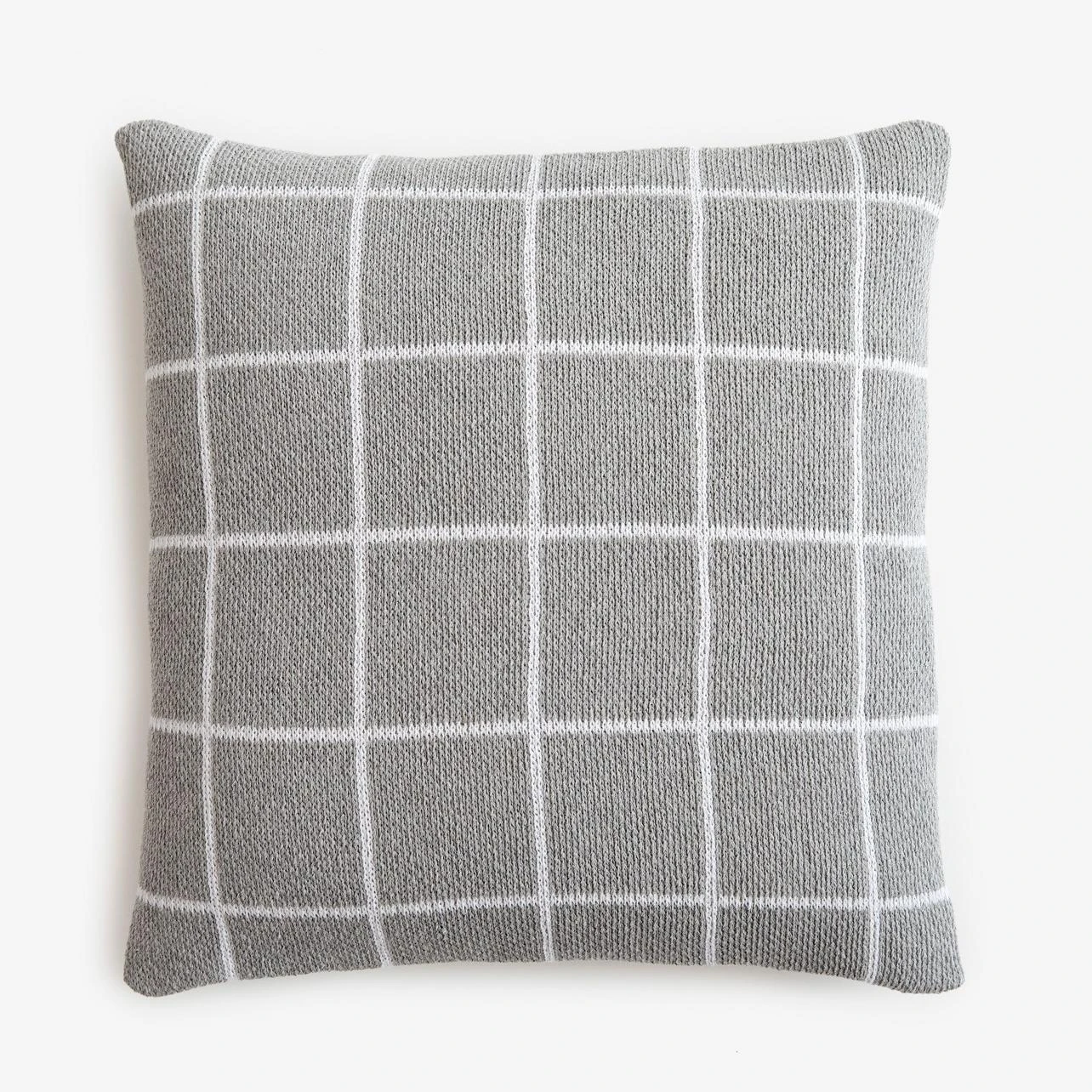 A modern motif in gray and white, this recycled cotton and polyester throw pillow cover brings pattern and texture to any space. Layer with other pillows on the sofa, or feature it prominently on the bed, this graphic double-knit pillow cover has a sweater like texture with a high quality weight and feel. Featuring a signature Unison grid pattern, and produced by a fourth-generation family owned textile manufacturer, this throw pillow cover is both designed and produced in the USA.
