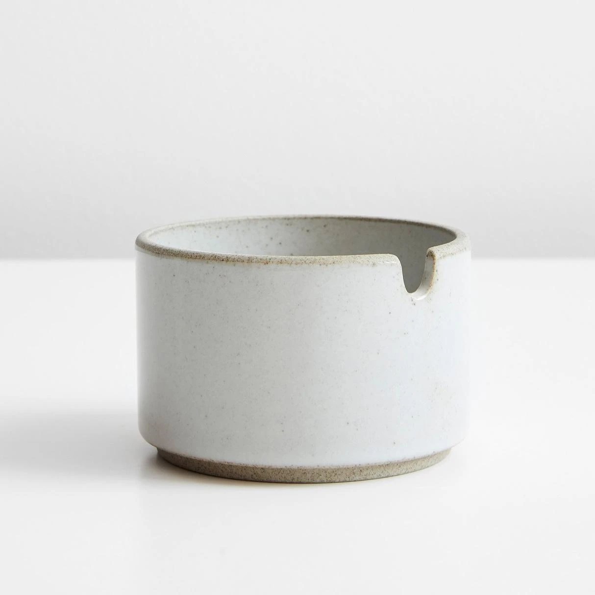 Simple and unadorned, the clean lines of this gloss gray sugar bowl recall Japan’s traditional forms. In fact, for almost 400 years Japanese artisans in the Hasami district have been making pottery such as this. The tradition carries through with this modern and simple design that can be stacked with creamer for storage. Pair it with the saucer for a lid.