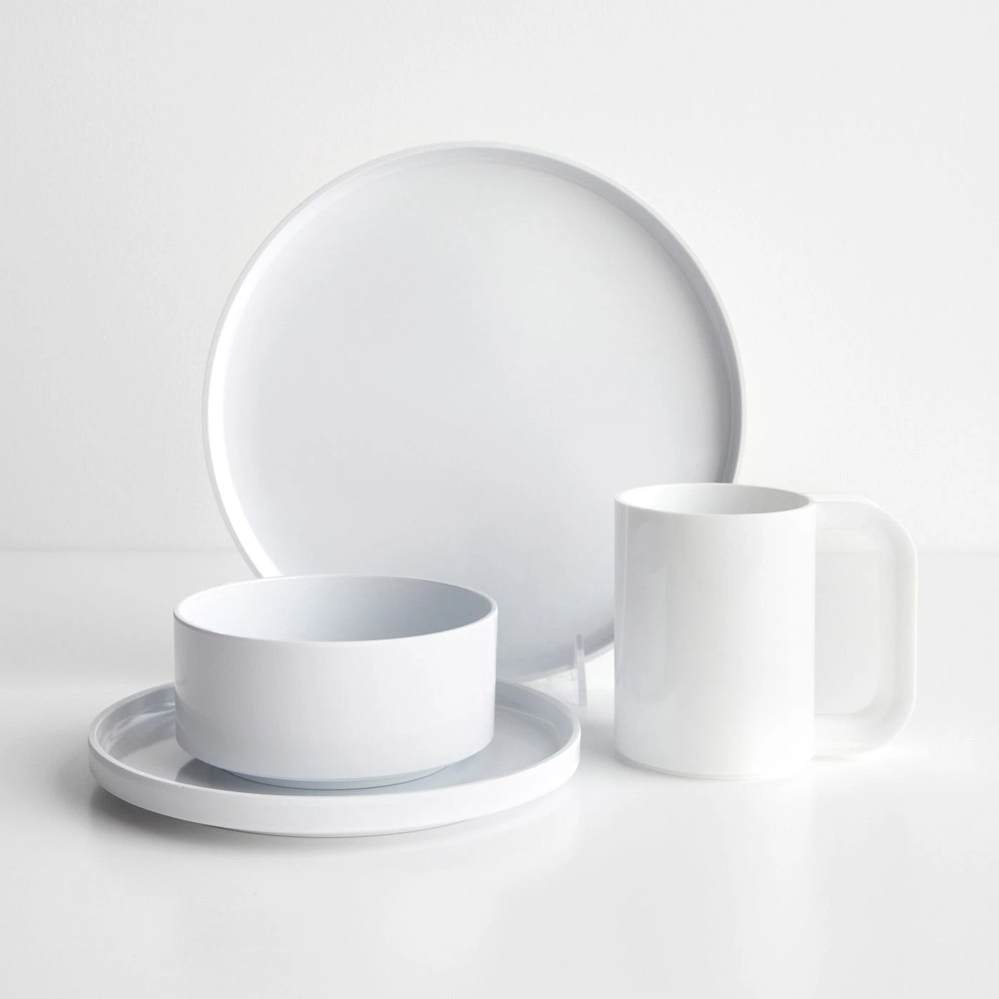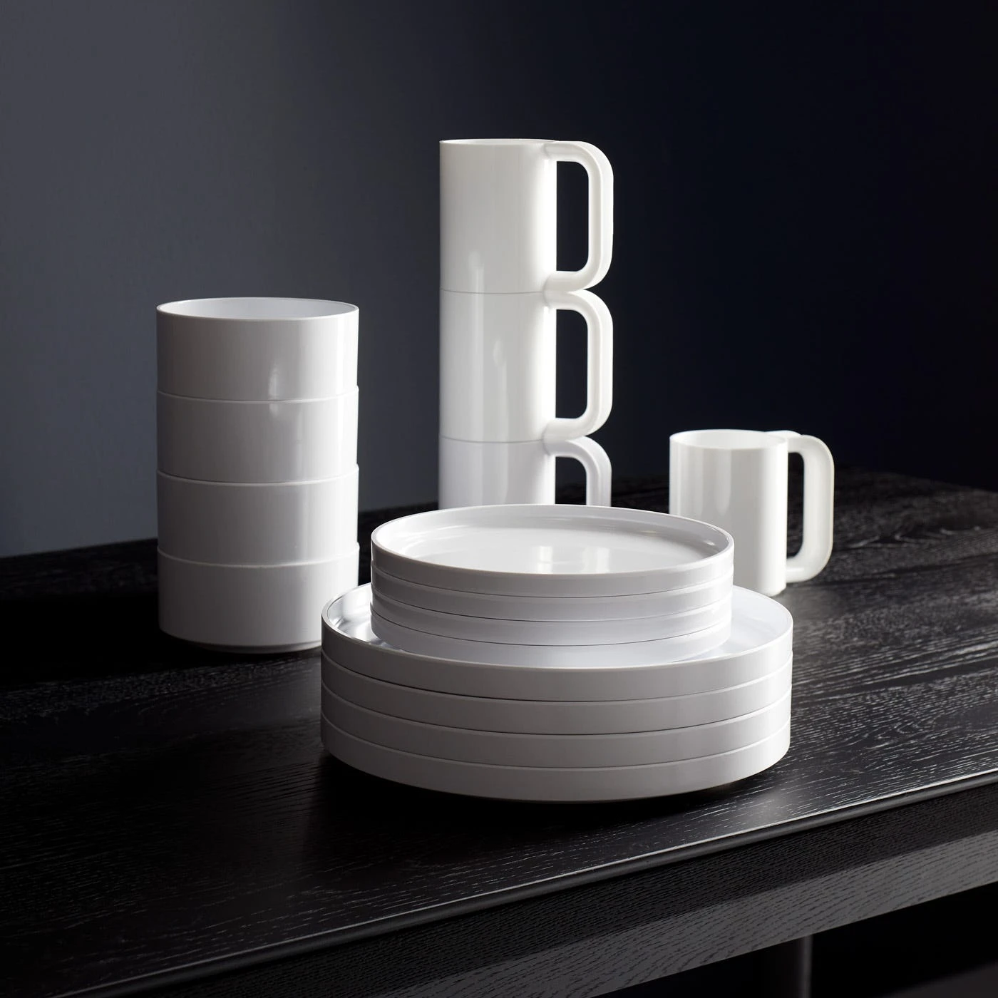Long-lasting in both quality and design, Heller’s melamine dinnerware was originally created by Massimo Vignelli in 1964 and began production under Heller seven years later. Known for its simplistic and functional, stackable design, Hellerware has been in production for over fifty years. Suitable for both indoor and outdoor use, these plates, bowls, and mugs are a piece of design history with a continued legacy to be enjoyed for generations to come. With its signature straight lines and under-sided lip, which allows the pieces to stack seamlessly, Heller’s modern dinnerware design in crisp white is a timeless classic.