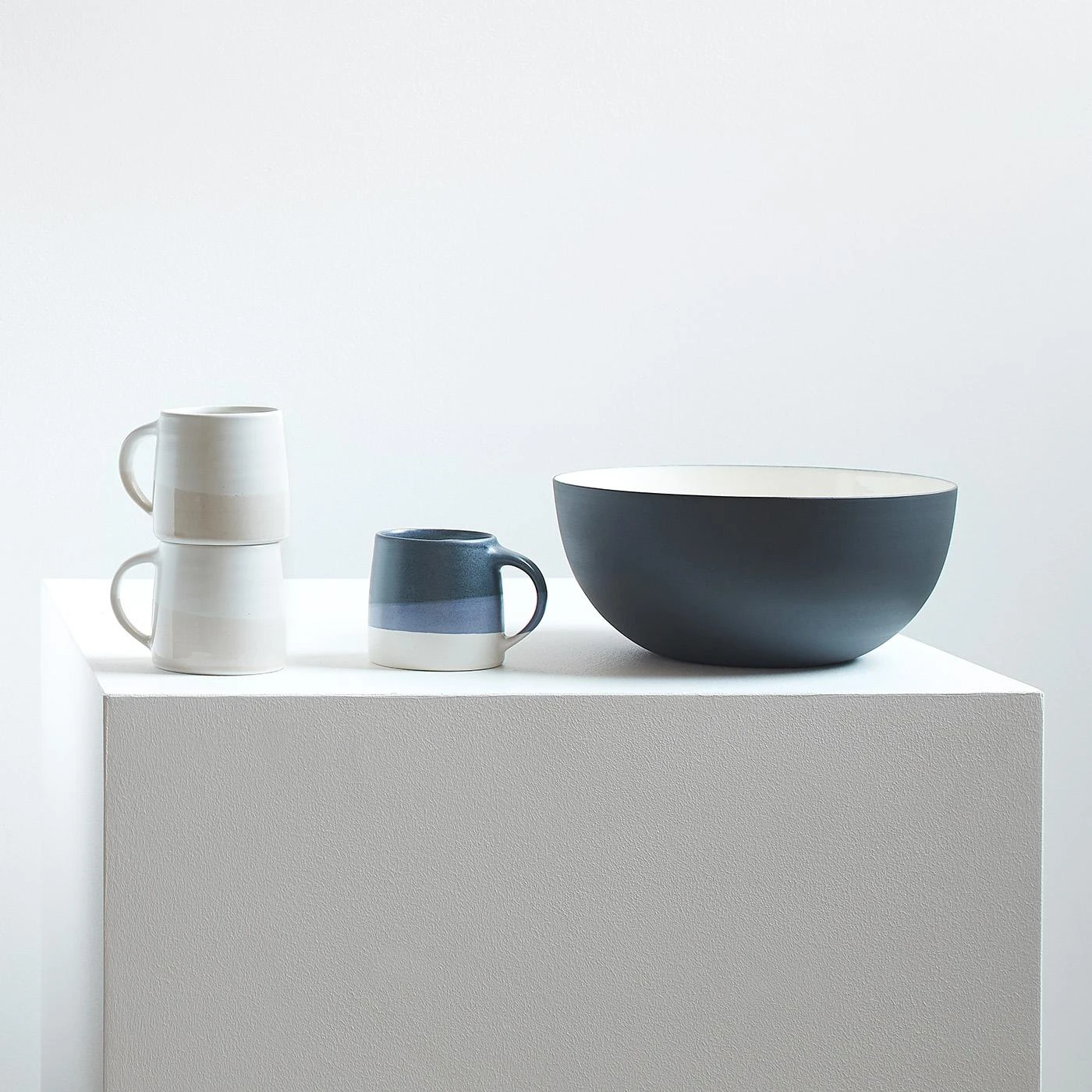 Pure beauty from the potter’s wheel. The unique expressions of these mugs comes from two pink colors of layered glaze, and a mix of luster and matte textures. Contemplate the abstract horizon scene as you sip your morning coffee. These mugs (and that morning joe) are best shared in the company of friends. For anyone that uses them, it’s about look and feel. They’re shaped from one piece of clay to fit the curves of your hands, with a wide-arched handle for comfort.