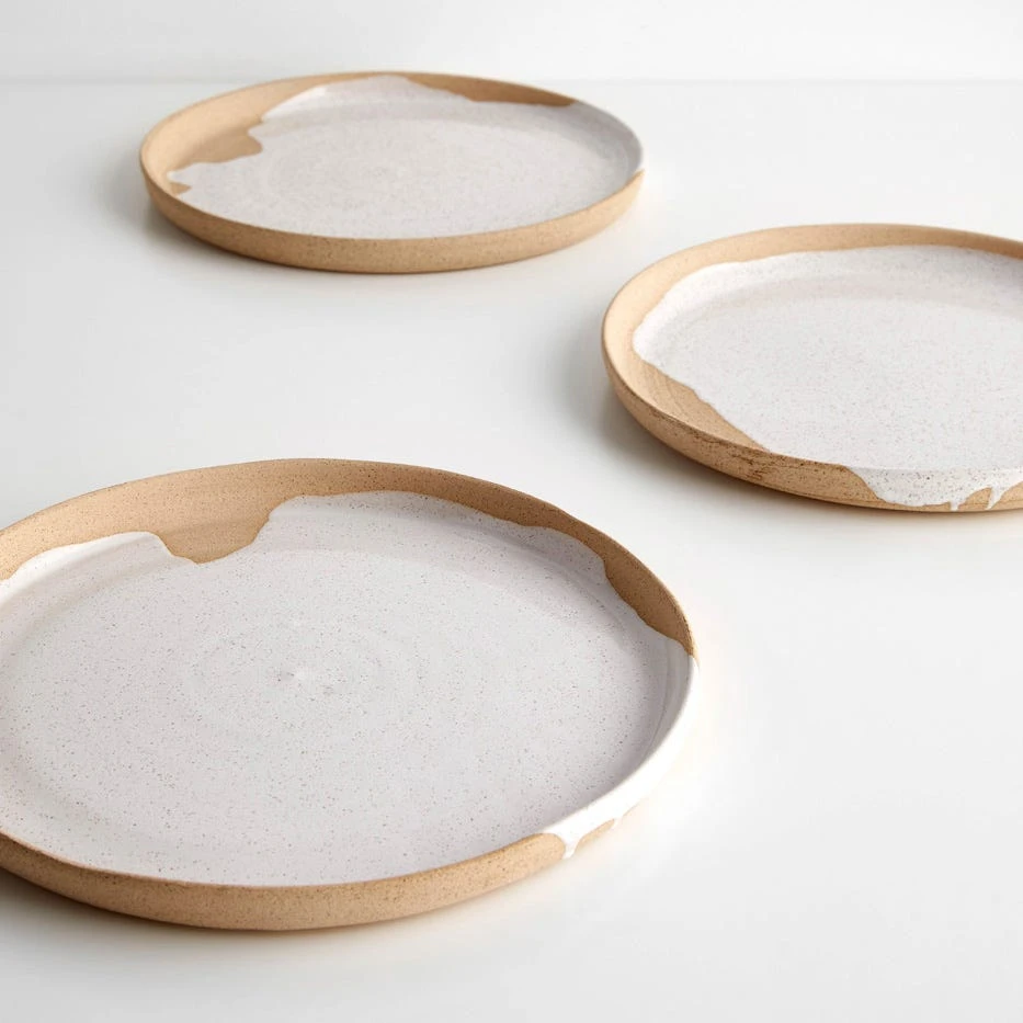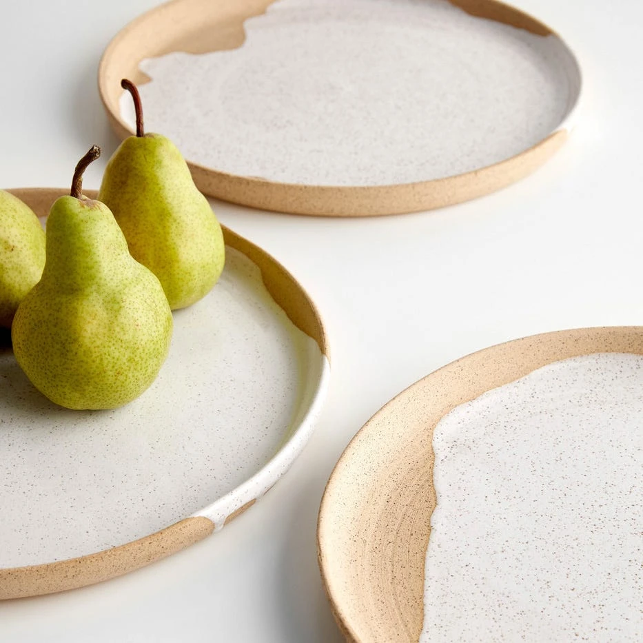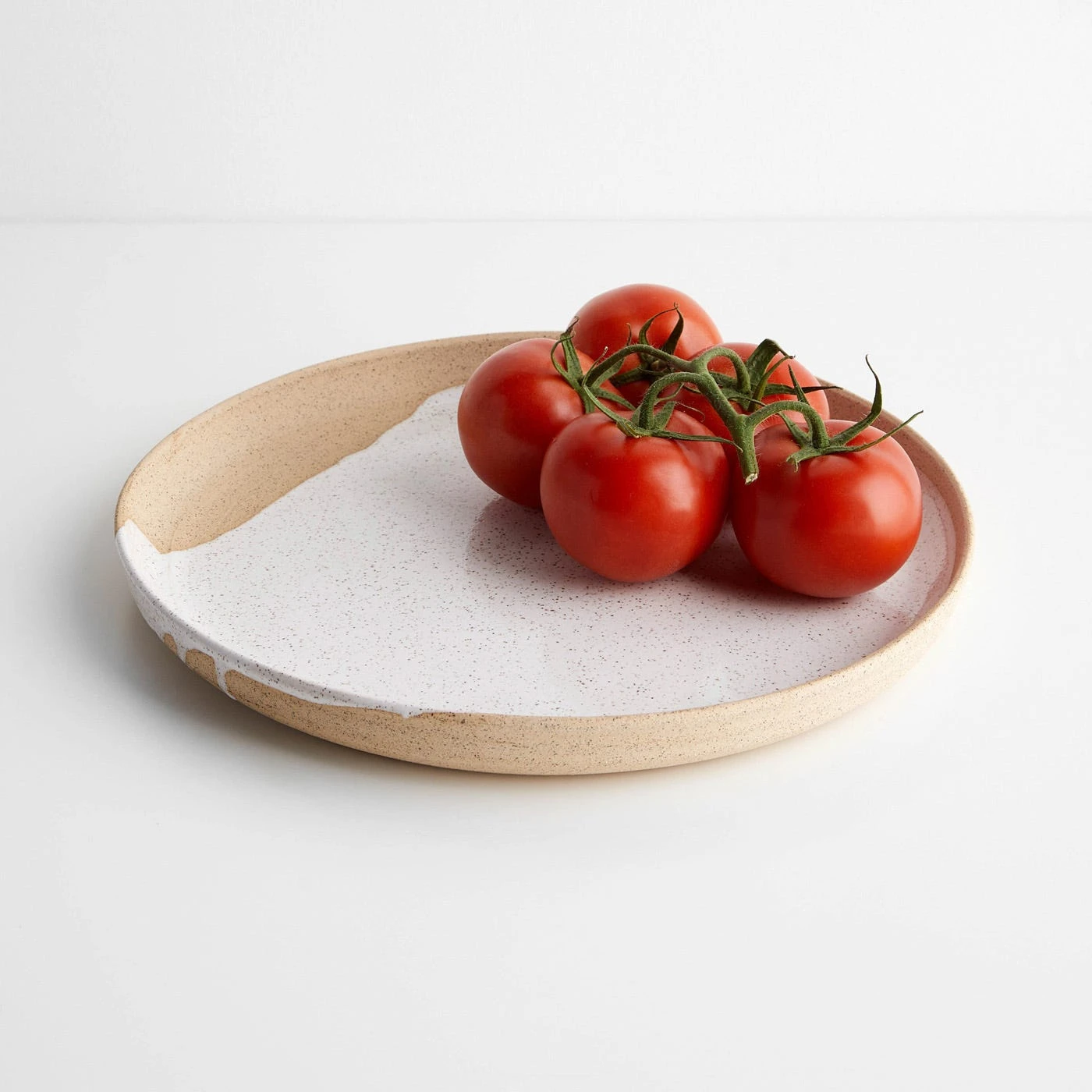 The Ilog Platter brings nature-inspired beauty to the dinner table. Ilog (pronounced ee-lohg) means “river” in Tagalog, a name derived from the way the white satin glaze flows over the piece to create organic pooling and drips down the sides. Crafted exclusively for Unison in this colorway by Debbie Carlos, the speckled tan ceramic stoneware features a raw texture, creating a subtle contrast with the smooth glaze. With each piece created by hand, no two are exactly alike. When not used for serving dishes, this unique piece can function as a beautiful tray for showcasing decorative items.
