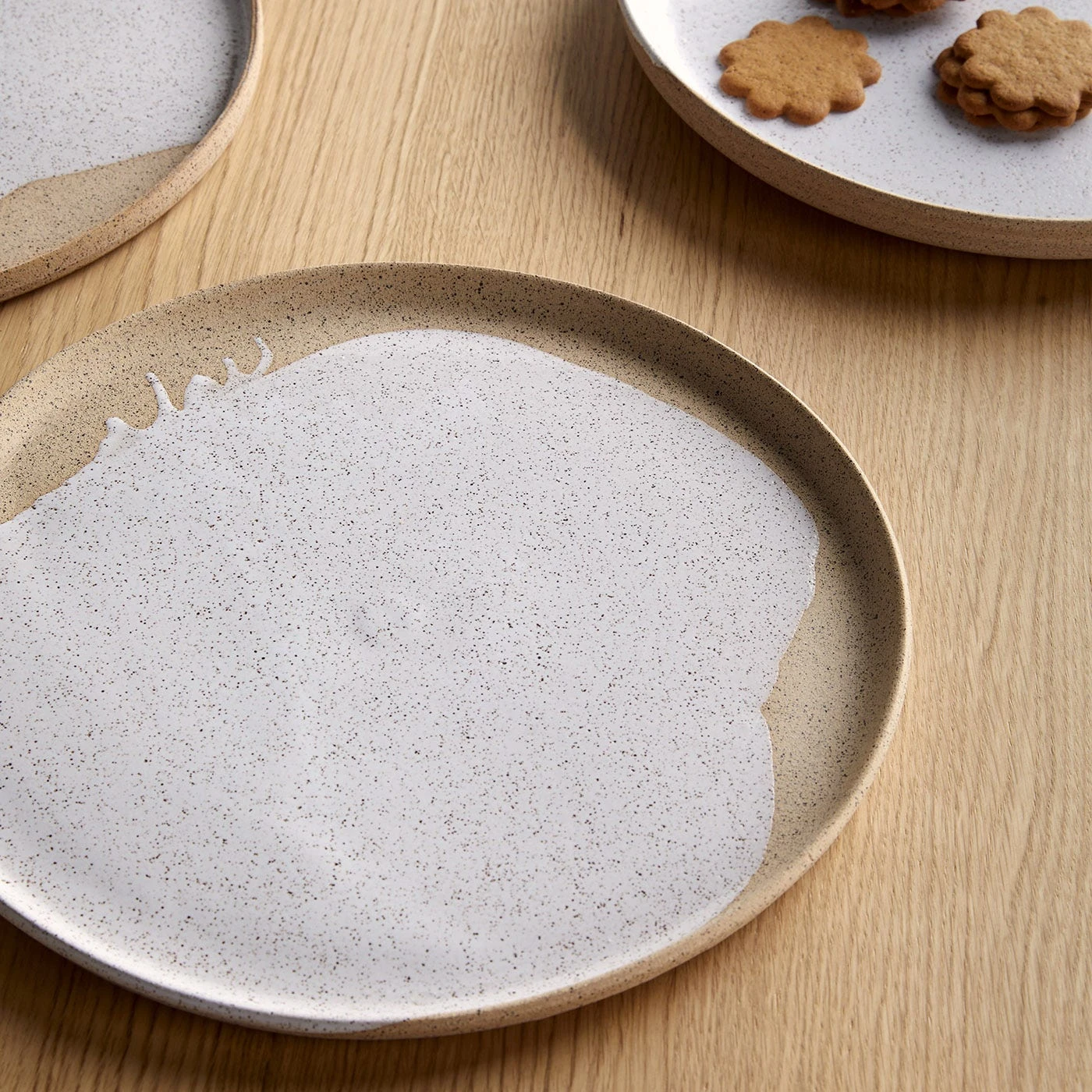 - Each platter is handmade with unique variations in the flow and coverage of the glaze and the speckles within it, making it truly one of a kind.