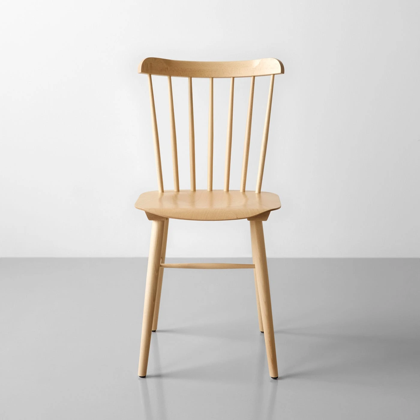 The Ironica Natural Beech Chair offers unequivocal timelessness and craftsmanship. Made by TON, a maker of bentwood furniture since 1861, each chair is created by skilled artisans in the Czech Republic. Natural beech wood has been shaped into the iconic Shaker-style back, complete with seven hand-smoothed spindles and a curved backrest. The gentle slope along the front edge and a shallow indentation ensure superior seated comfort. The stain-free finish of this Windsor-inspired chair accentuates the wood’s varying natural tone and grain while complementing any dining table.