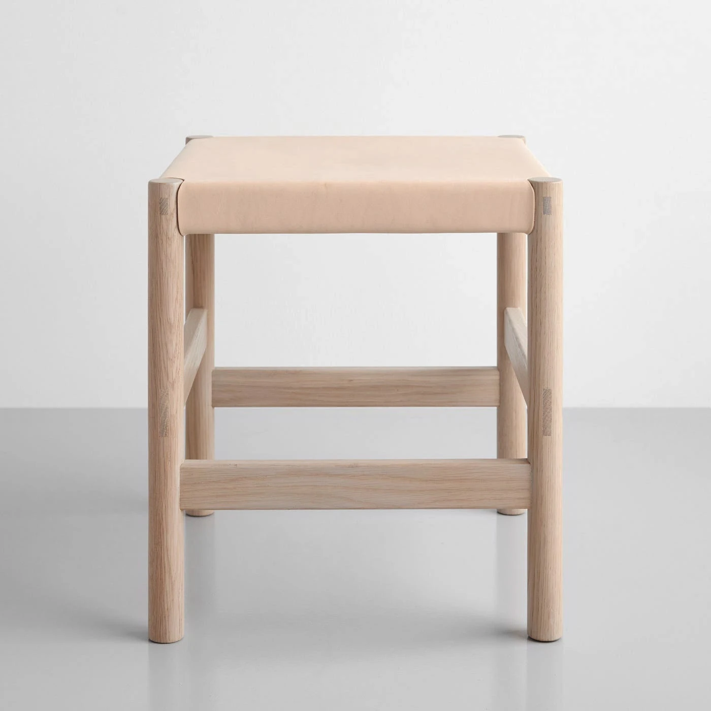 This beautiful stool makes a quietly modern statement with its simple shape, whispered whitewash and natural full-grain leather seat. Take the Juniper Stool from accent piece to impromptu seat or ottoman. Mix in a few Juniper Chairs for a coordinated but dimensionally interesting seating arrangement. It’s made with a technique that’s been used for generations: Chinese joinery, a fading yet honored artform that employs the use of intricate, interwoven joints to create furniture without hardware. Also good to know: The vegetable tanned leather will evolve and darken as it ages creating a lovely patina and storied history.