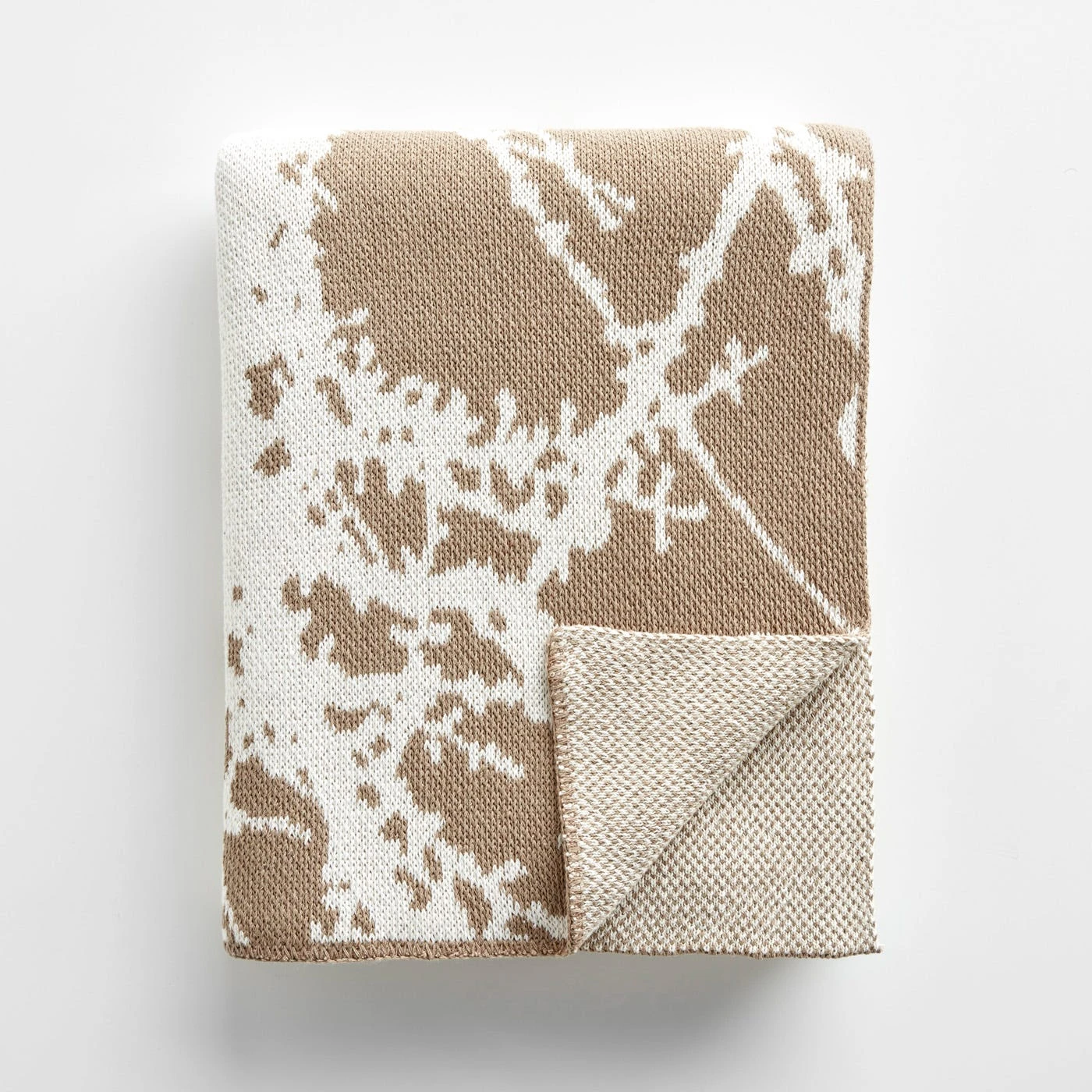 The Larch pattern was part of the initial collection of textiles offered by Unison back in 2006. Larch’s inception began when co-founder Alicia Segal took a photograph of a larch tree – from there, the photograph was abstracted and translated into a print. It went on to be applied to a myriad of products, including bedding, tablecloths, wrapping paper and more. With such a strong connection to the foundation of Unison, Larch was re-imagined and re-launched as this knit blanket in honor of Unison’s 15-year anniversary. With a double-knit woven construction, this throw blanket has a weighty feel that is perfect for curling up on the sofa, while its neutral color palette easily complements any setting.