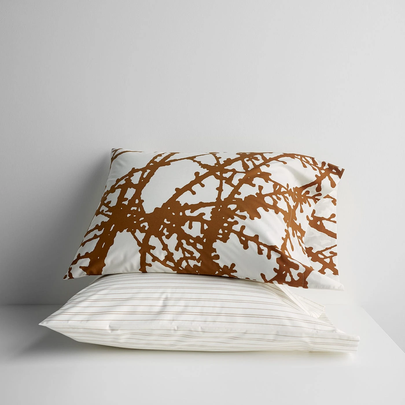 Originally launched with our debut textile collection in 2006, the Larch pattern makes an impressive return. The unique print is inspired by a photograph of a tamarack larch tree originally taken by Unison co-founder Alicia Segal at her family’s country home. The tree branch silhouette was abstracted and translated into a large-scale design, creating an impactful organic feel with strong natural elements. The rustic orange hue creates a striking contrast with the classic ivory base of smooth, crisp cotton that’s Oeko-Tex® certified. Made in Portugal, this set of two pillowcases feature a substantial 3.75” hem with side openings and 220 thread count percale that feels like a dream.