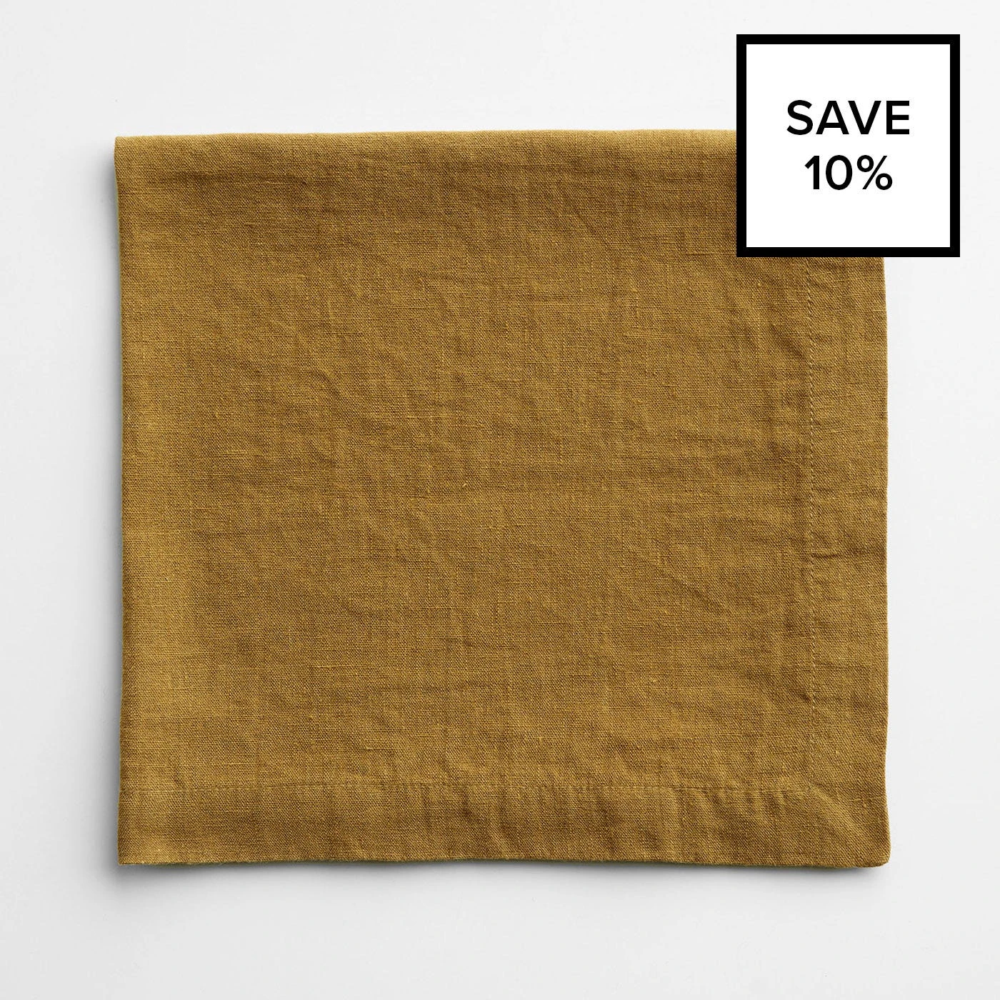 Create a warm and festive atmosphere on your dinner table with this fine European linen napkin. This napkin is crafted from Oeko-Tex® certified flax linen, so it’s free from toxic chemicals. It’s garment washed and arrives super soft, ready for use. Plus it’s easy to clean — just toss it in the washing machine. The double turned hem and mitered corners show off the quality and care that are woven into each napkin. This rich and moody bronze shade joins our collection of solid color linen napkins. A 10% set discount is applied for purchasing the 8 piece bundle.
