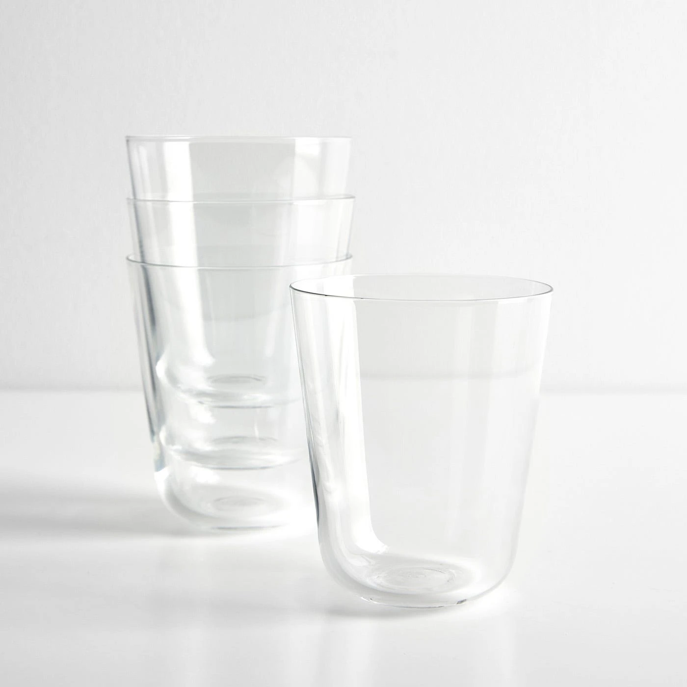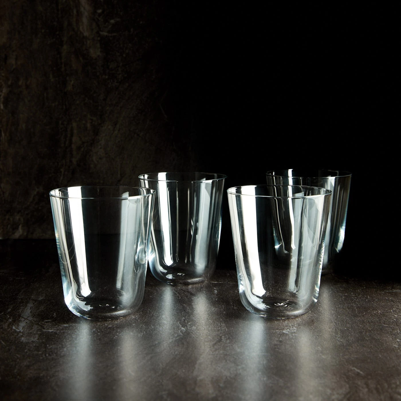 Choose this set of four LSA International Arc Tumblers to expand your drinkware collection. With a versatile medium size and crystal-clear design, these glass cups are undeniably timeless and endlessly useful. The simple, rounded curves and softly tapered shape make the stackable 13-ounce Arc Tumbler an equally lovely option for enjoying everyday meals and entertaining guests. A cold-cut, fire-polished rim adds a delicate touch to balance out the thicker, sturdy base. Sip water, juice, soda and more from the nicely curved cup. For cleanup ease, these crystalline glass tumblers are conveniently dishwasher safe.