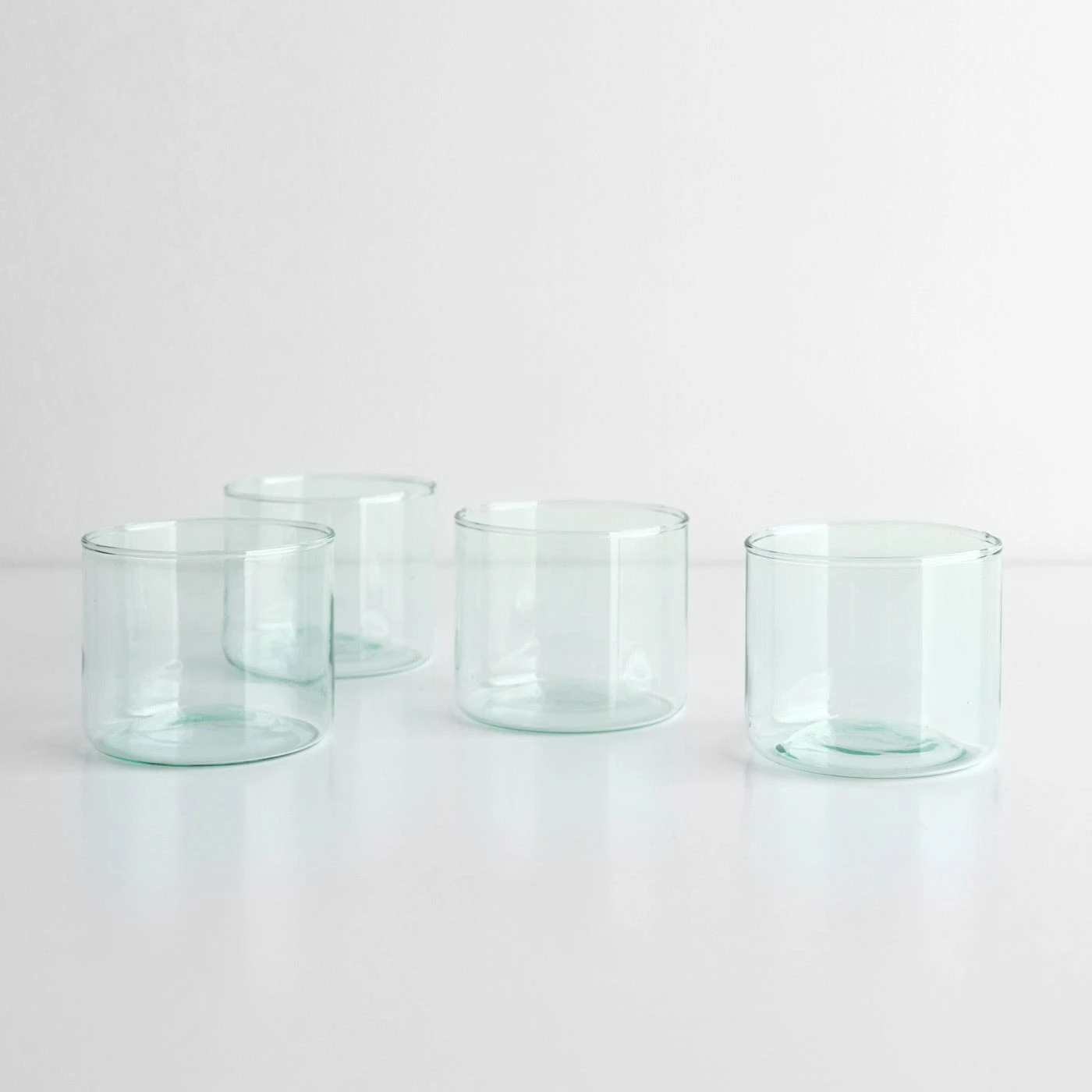This set of four LSA International Canopy Tumblers features an intentional, functional design. The simple, classic barware is hand-blown with recycled glass from jars and bottles sourced locally in Poland. This process produces tiny air bubbles which add unique character to each tumbler as well as a light green tint. Created in collaboration with the Eden Project, the subtly domed base of each glass mirrors the organization’s innovative biospheres in Cornwall, England which function as the world’s largest greenhouses. These wide 9-ounce glasses are perfect for everyday use or entertaining. Enjoy them for sipping water, wine and juice, or add to your home bar for scotch and whiskey.