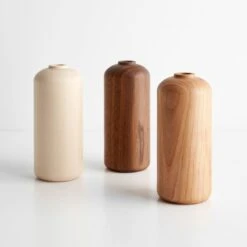 Sized perfectly for a stem or two, the 6.5″ Maple Bud Vase brings a touch of natural beauty to any table, shelf or mantel. This one-of-a-kind design is hand-turned and carved in artist Melanie Abrantes’ studio from a solid piece of light-toned Maple wood. Then, it’s hand-finished with mineral oil and beeswax to bring out the beautiful grain and natural markings. Use the glass vial inside to keep fresh flowers hydrated. A 4″ vase size is available for clustering in a multi-tiered display.