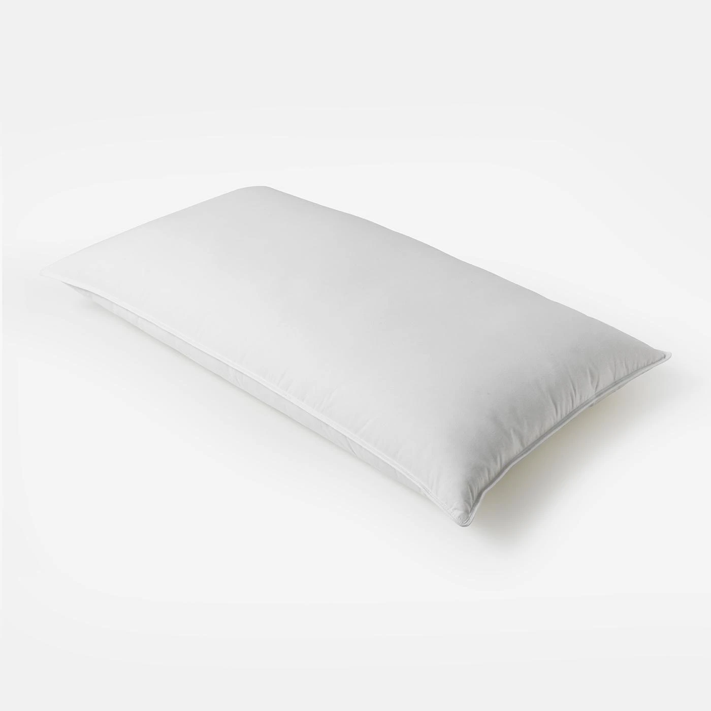 Filled with premium white duck down at a medium level of firmness, this bed pillow is made with a 100% cotton, down-proof fabric shell and a double-needle stitched construction. The craftsmanship and quality materials that go into making this pillow will keep you sleeping soundly for many years to come. This option fits King-sized pillowcases.