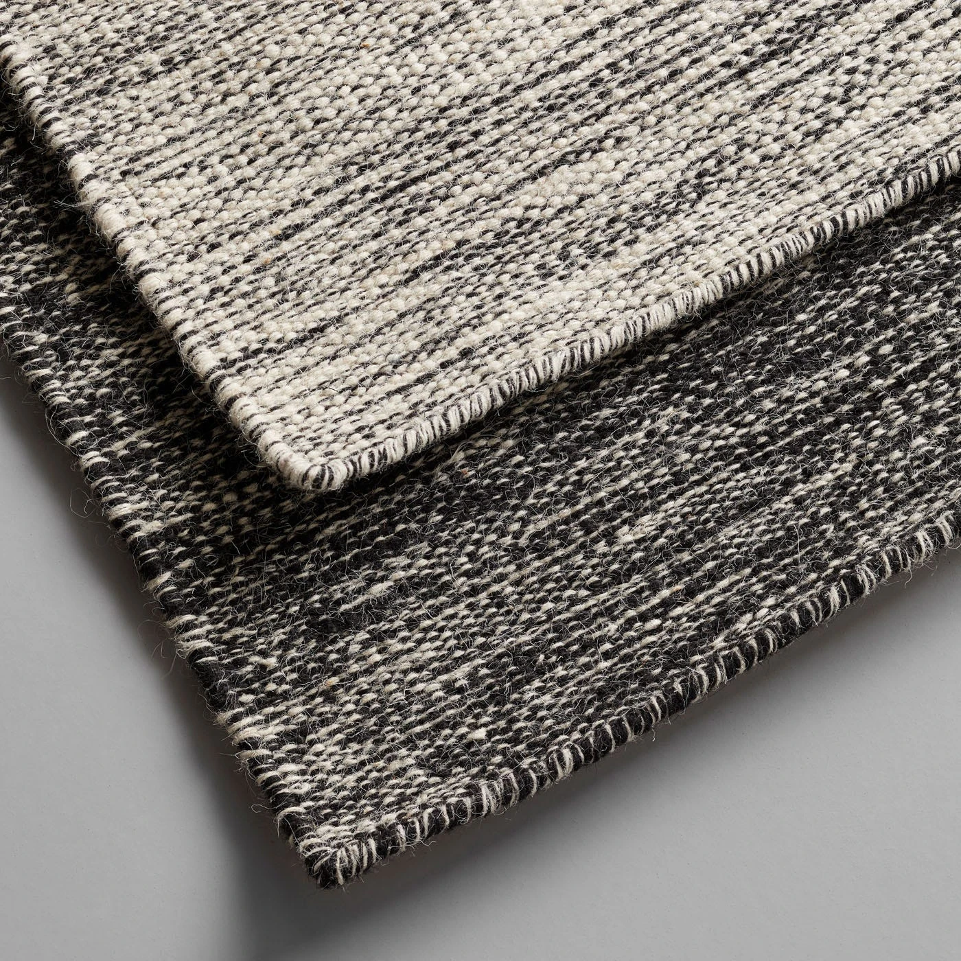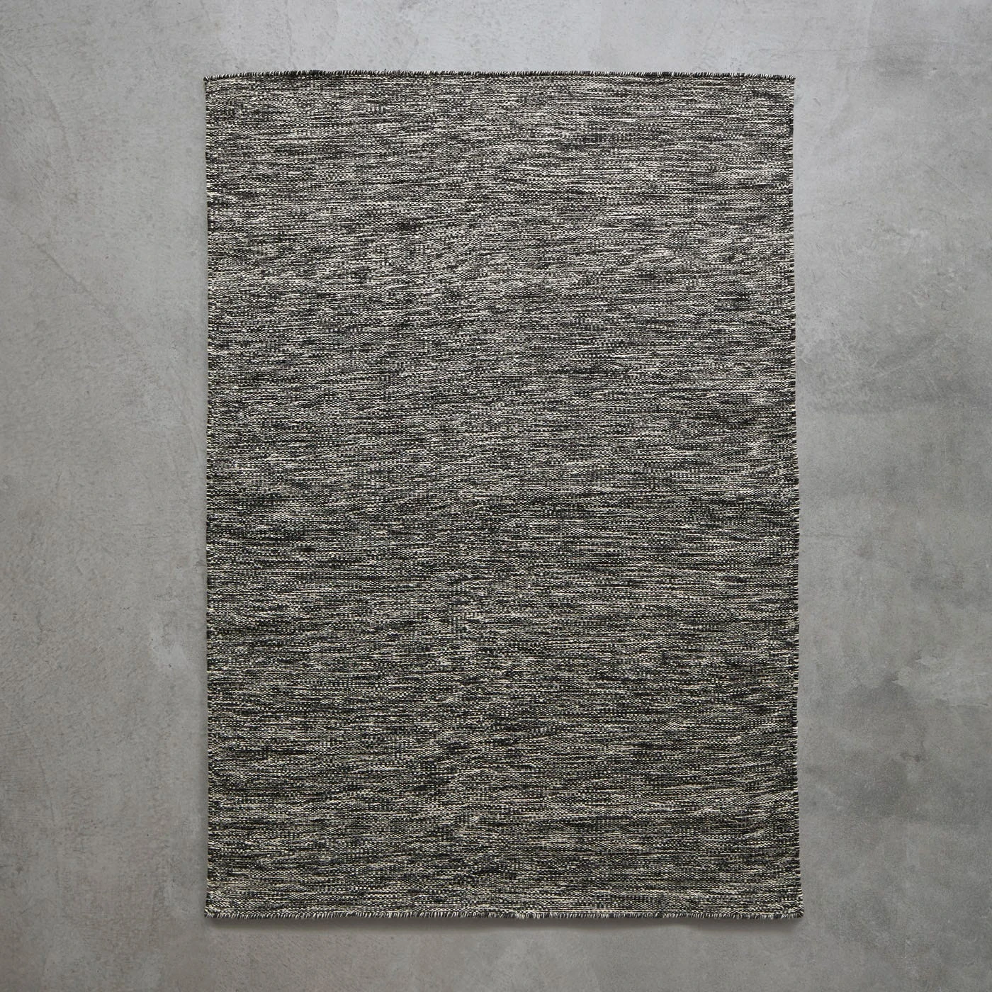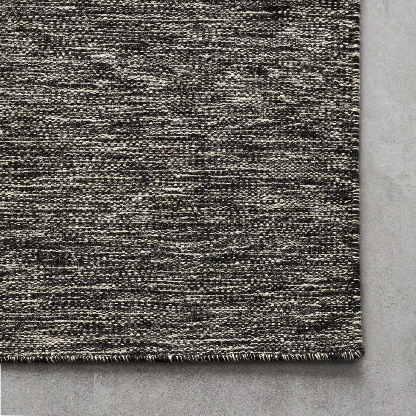 Simple yet dynamic, this black wool rug makes a great base for styling any modern room. Handwoven from 100% wool — it’s durable yet still feels wonderful underfoot. This flatweave rug features black yarn twisted with white fibers for added character and dimension. Since it’s double-sided you can turn it over for even wear, ensuring it lasts for years to come.