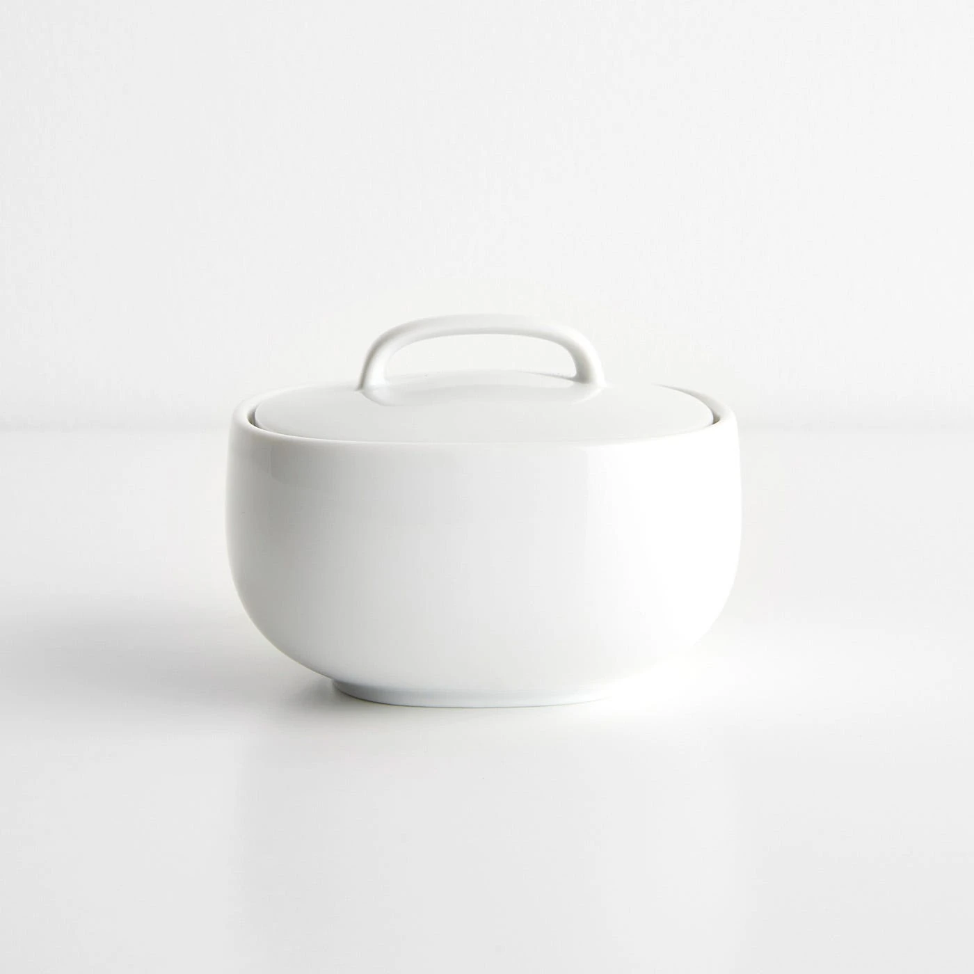 The Moon Dinnerware Collection, designed by Jasper Morrison for German porcelain manufacturer Rosenthal, combines modern shapes with classic curves to form a refreshingly simple dinnerware collection. The softly rounded geometric handles of this sugar bowl blend seamlessly with its traditional profile, allowing it to accommodate any setting or occasion, from formal to everyday. With a rounded handle that’s pleasant to hold, and a lid that notches into place for added security, your coffee routine becomes even sweeter. Made of fine porcelain, it’s dishwasher safe and scratch and wear resistant for easy care.