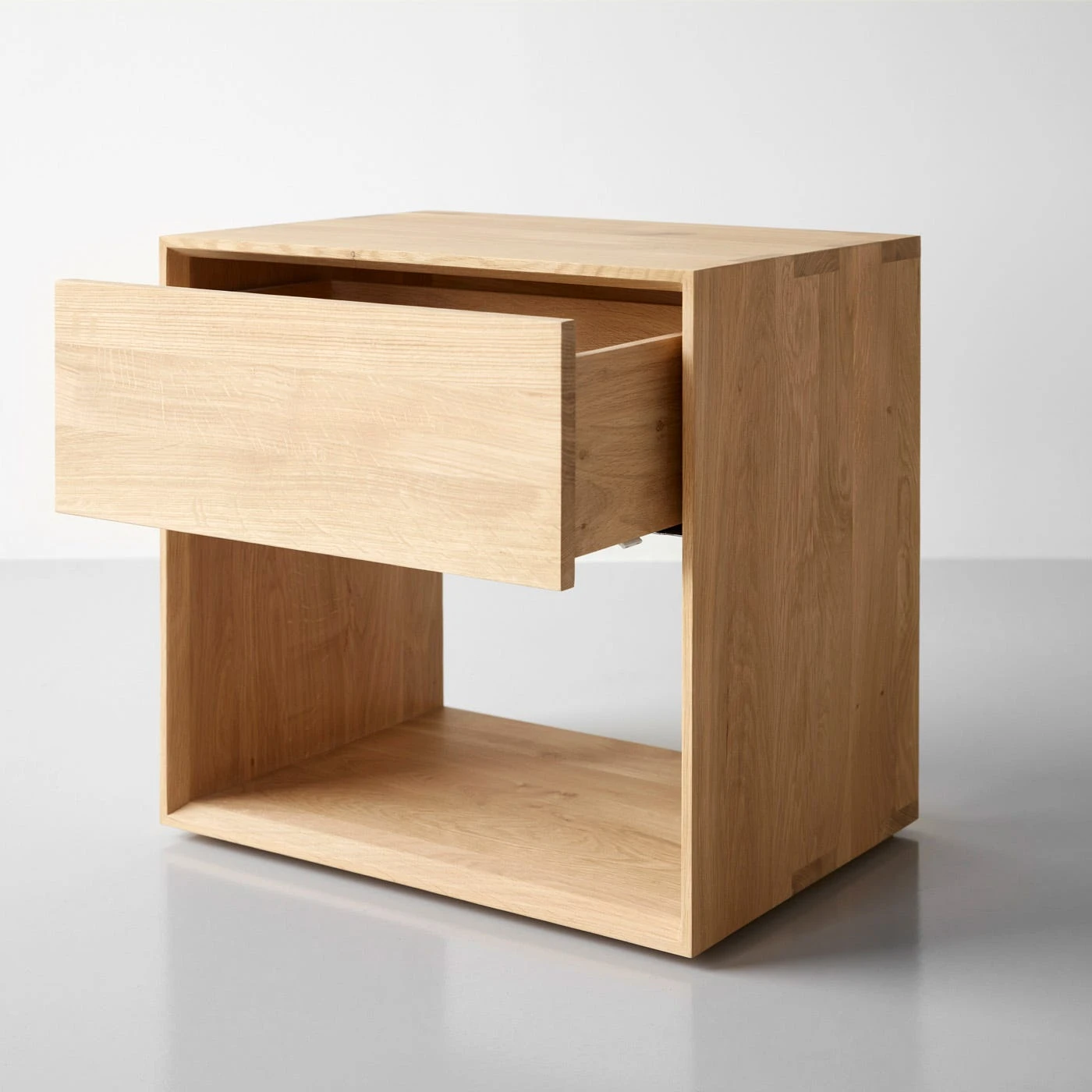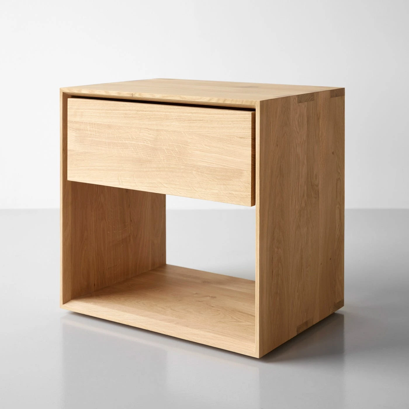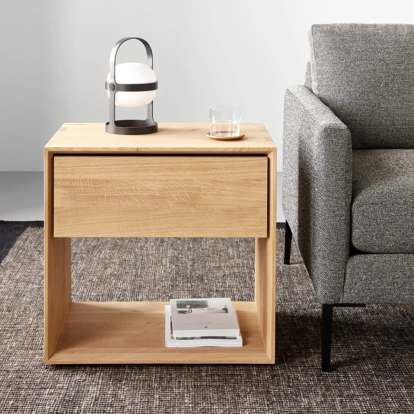 With simple, clean lines, this solid white oak table has an understated design that works seamlessly in any space. A taller version of the classic Nordic Nightstand, it features a modern profile that works equally well alongside a living room sofa, a home office desk or any other space where additional tabletop space is needed. Don’t count it out as a nightstand either, as it matches up well with deep mattresses and tall bed frames. Regardless of its location, this table offers a whisper-quiet soft-close drawer for out-of-sight storage. With its unique box joint edges and tapered, mitered corners, this carefully crafted piece certainly isn’t short on design details.