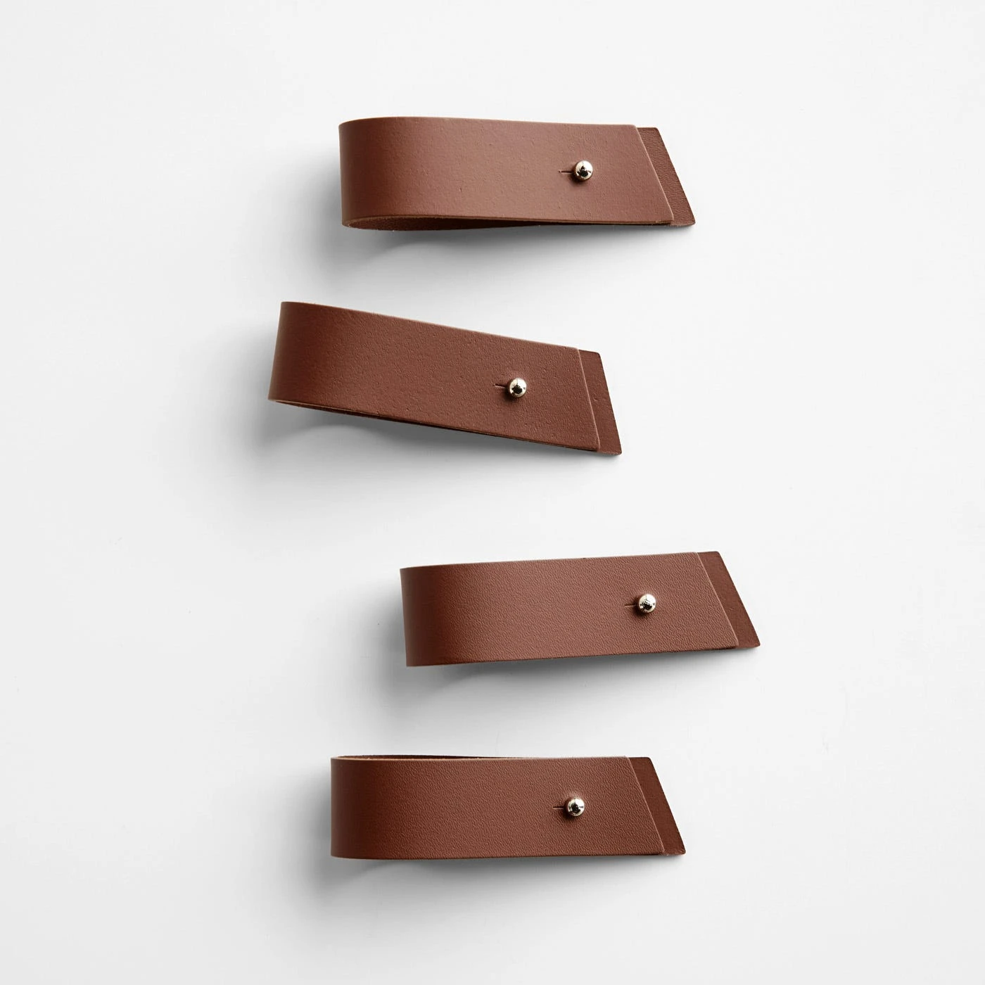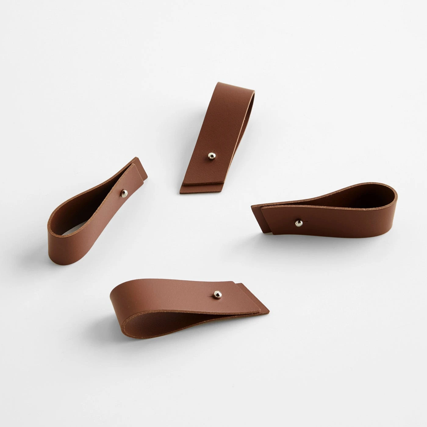 Add a refined accent to your dining table with these Pecan Leather Napkin Holders in a classic deep brown hue. Each of the four bands in the set are handcrafted using 100% recycled leather, which is made by cleaning, compressing and bonding discarded leather straps. The result is a sustainable material with a uniform, easy-to-clean surface. A metal value-post closure makes it simple to secure and release cloth napkins as needed. Use these brown napkin rings to make everyday meals and dinner parties alike feel special.