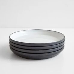 Here to take a place at the table — these plates, which evoke the essence of both Japanese and European tablewares. Fluid yet functional. Durable and beautiful. This plate features a black exterior with a white interior that provides a contrasting and balanced look for your table. In various sizes for a variety of dishes, each plate in the collection safeguards your meals with a distinctive raised rim. The 8” size calls for toast and salad. Designed and made in Japan.